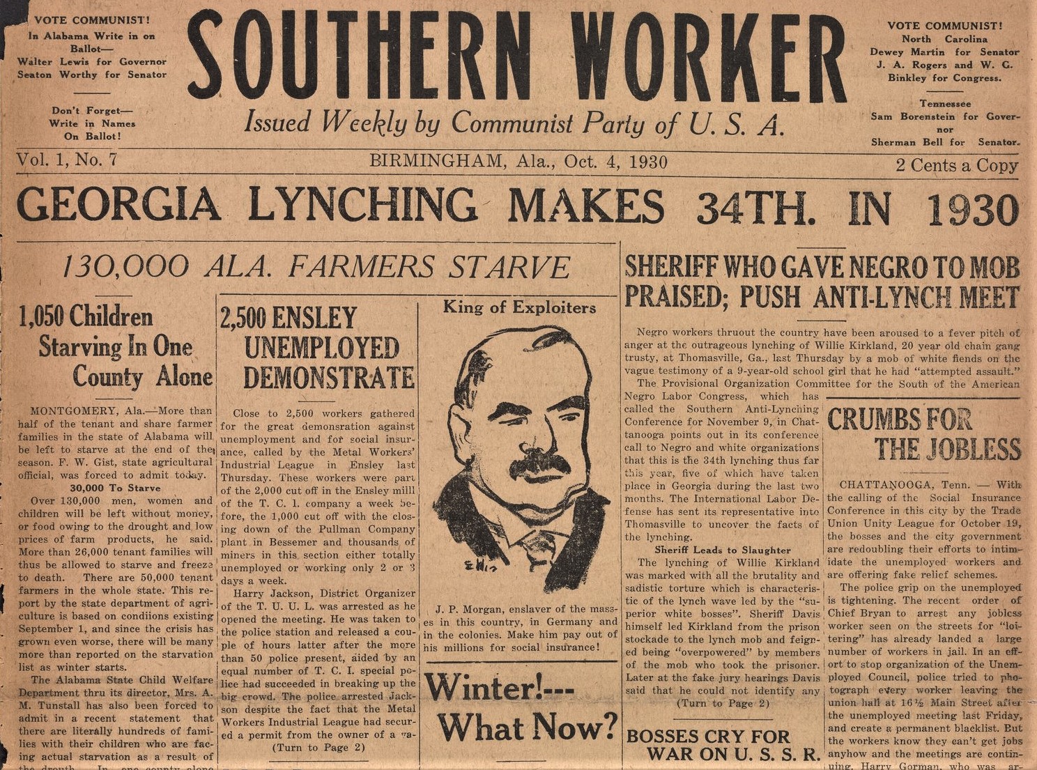 Southern Worker. Vol. 1 No. 7. October 4, 1930.