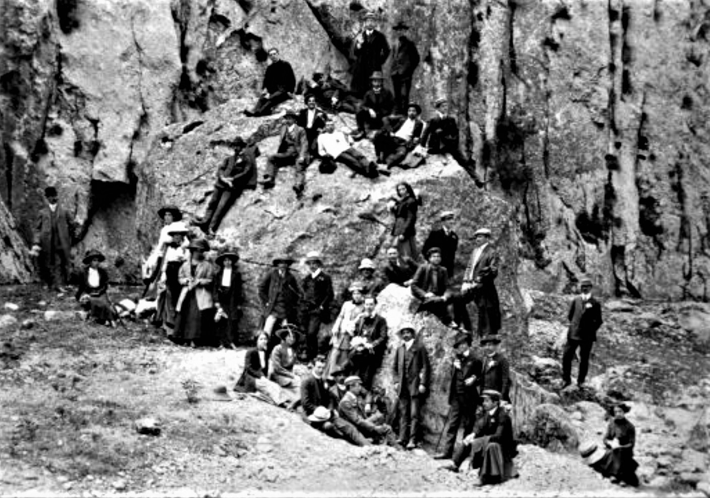 “Come on, we get out here,” says Kies, a flat nosed, but not flatheaded individual, descending on innumerable series of wooden steps we plunge into a wood of Australian Eucalyptus trees and saplings; here, we come upon Kemp, well dressed and busily engaged serving the wants of a merry lot, while a Frenchman toots with brass cornet, the Marseillaise. A hum is heard upon every hand, everyone eating, drinking, or heatedly discussing topics of the hour. Kennedy is there, sleek and unabtrusive; Oliver is boiling the coffeepot, Australian style; Petersen is coming in on a tired, hired nag and a youngster also riding is with him; (the youngster joined the union while at dinner) Bell is there, red headed and dolled out for the occasion; he is speaking with “Sulphur Smoke Jones.” A Mexican cowboy utters occasional Indian calls which are answered by straggling arrivals of fresh picnicers through the thick bushes. Castcrino takes from about his neck a flashing, red, silk muffler, arranges it upon a rod and hoists it over-head as a beacon or guide (none will fail to recognize the revolutionary character of the picnicers), and songs are sung while wise heads wag. Sullivan wishes to be rid of something on his mind, mounts and perorates, among many things says, “We are free for at least a day in a year to enjoy the bounties and caress the Mother Earth.”