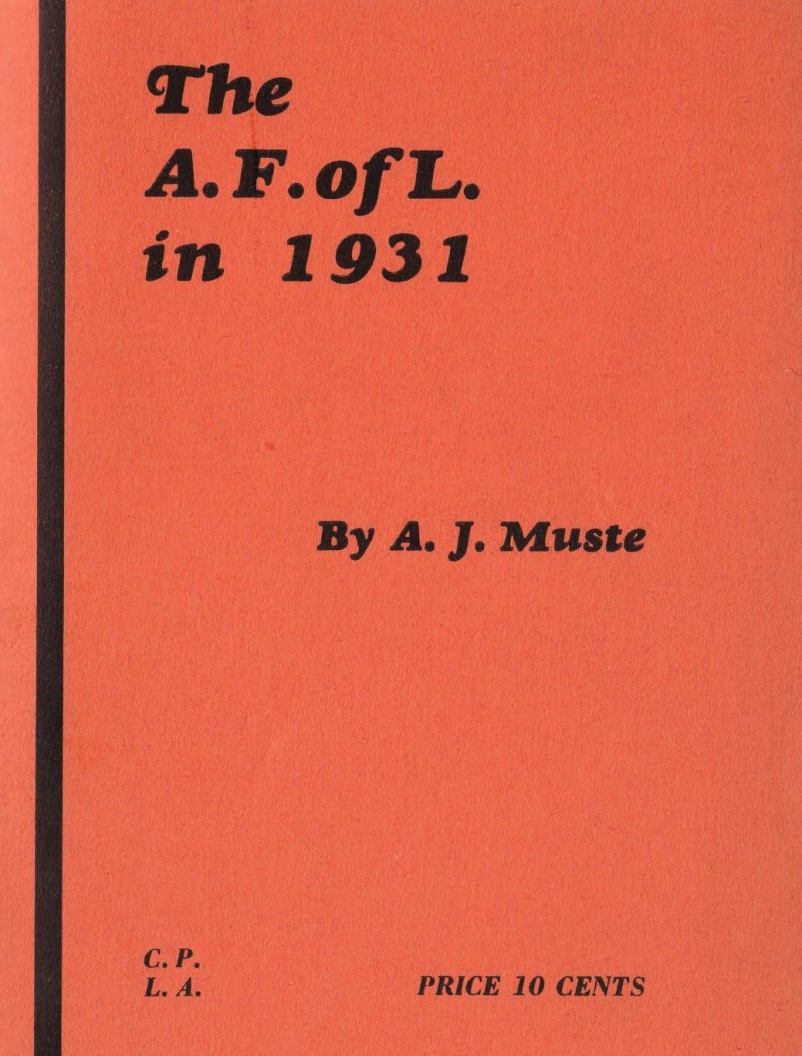 The A.F. of L. in 1931 by A. J. Muste. Published by the National, Executive Committee of the Conference fob Progressive Labor Action, New York. 1931.