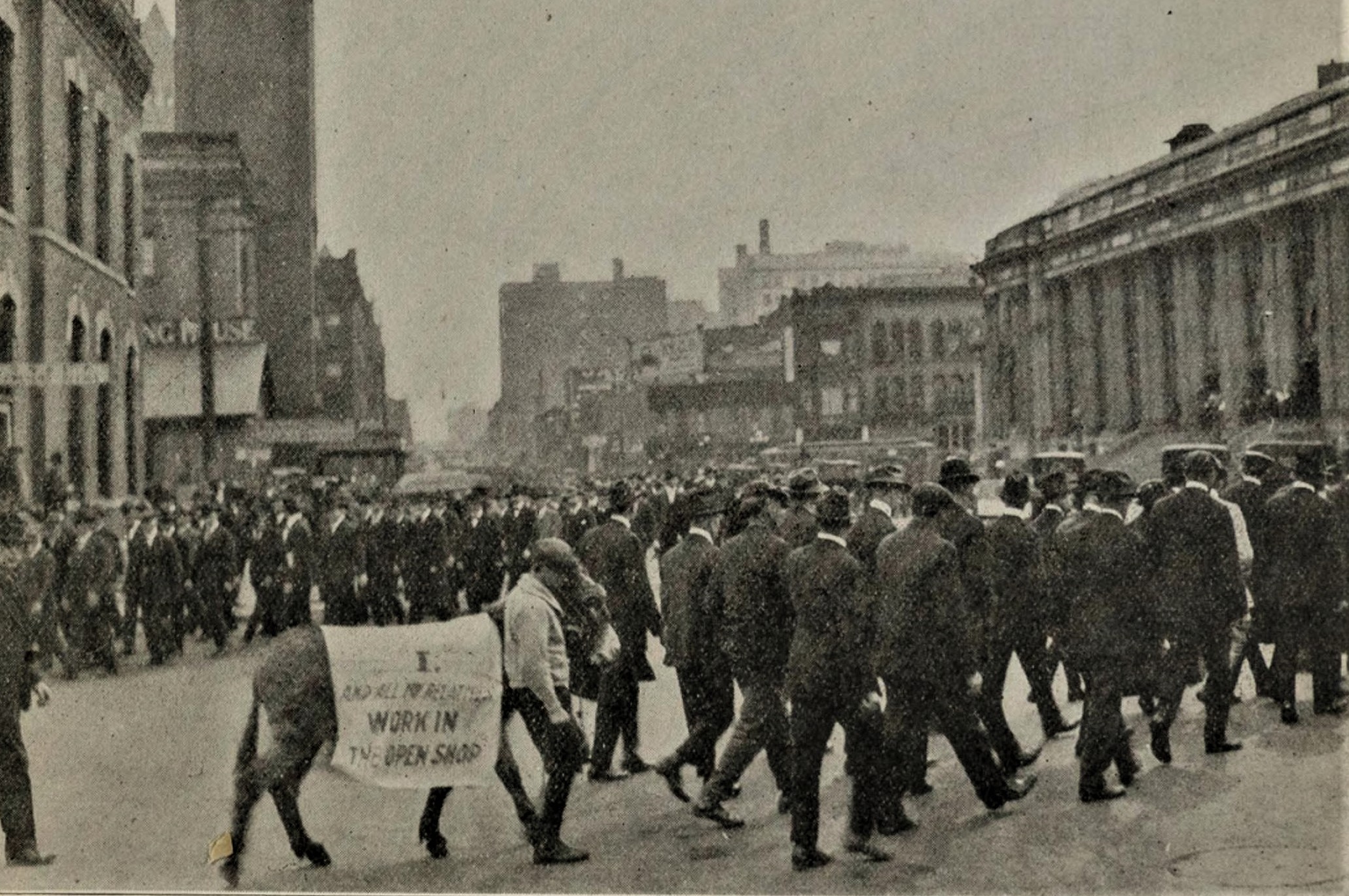 Most of the paraders marched by industries and left their craft banners at home as evidence of the uselessness of that form of organization. The only exceptions were the Printers, Bricklayers and Wood Workers and Cabinet Makers.