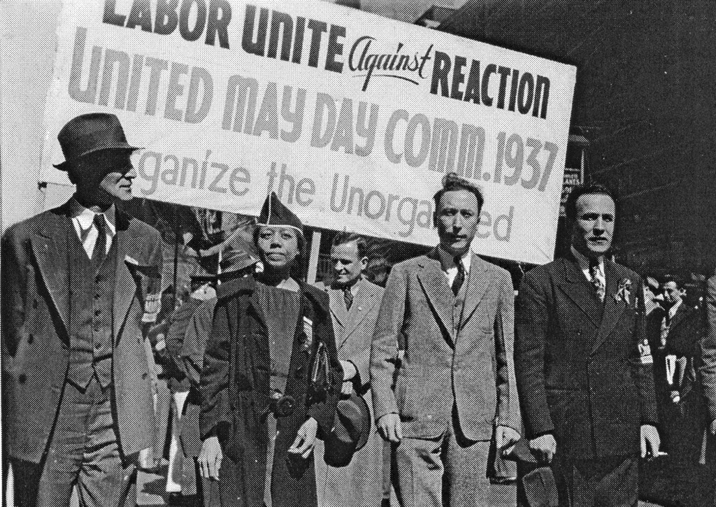 Forty years ago, MacGuire, head of the Brotherhood of Carpenters, spoke at Union Square on May Day and pledged the labor movement to fight not only for the 8-hour day but for the abolition of the capitalist system. Now, Hutcheson, the present head of the Brotherhood of Carpenters, is throwing out locals of his organization who show any progressive spirit, and hounds and expels all militant members of the union.
