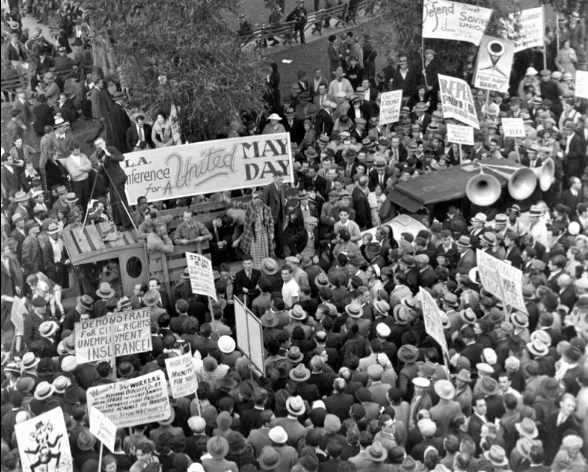 Each year the struggles of May Day are lifted to a higher level, as was shown last year on May Day in Berlin, particularly in Wedding. In the United States the demonstrations of March 6th against unemployment were of tremendous political importance. May Day this year must represent a higher political stage in the development of the class struggle in America. Born in the United States in the throes of a general strike movement and in a fight for a major political demand, May Day this year must witness a mass political strike in behalf of the major class issues of the American workers enumerated above. There must be strikes on May Day, for stoppage of work is the very tradition of May First. The strikes must be mass strikes involving great numbers of workers leaving their workshops collectively, not as individuals. Whole industrial units must be stopped, for only such strikes are effective demonstrations of the determined will of the workers to struggle. These mass strikes must be political, i.e., based on major political issues affecting the whole working class.