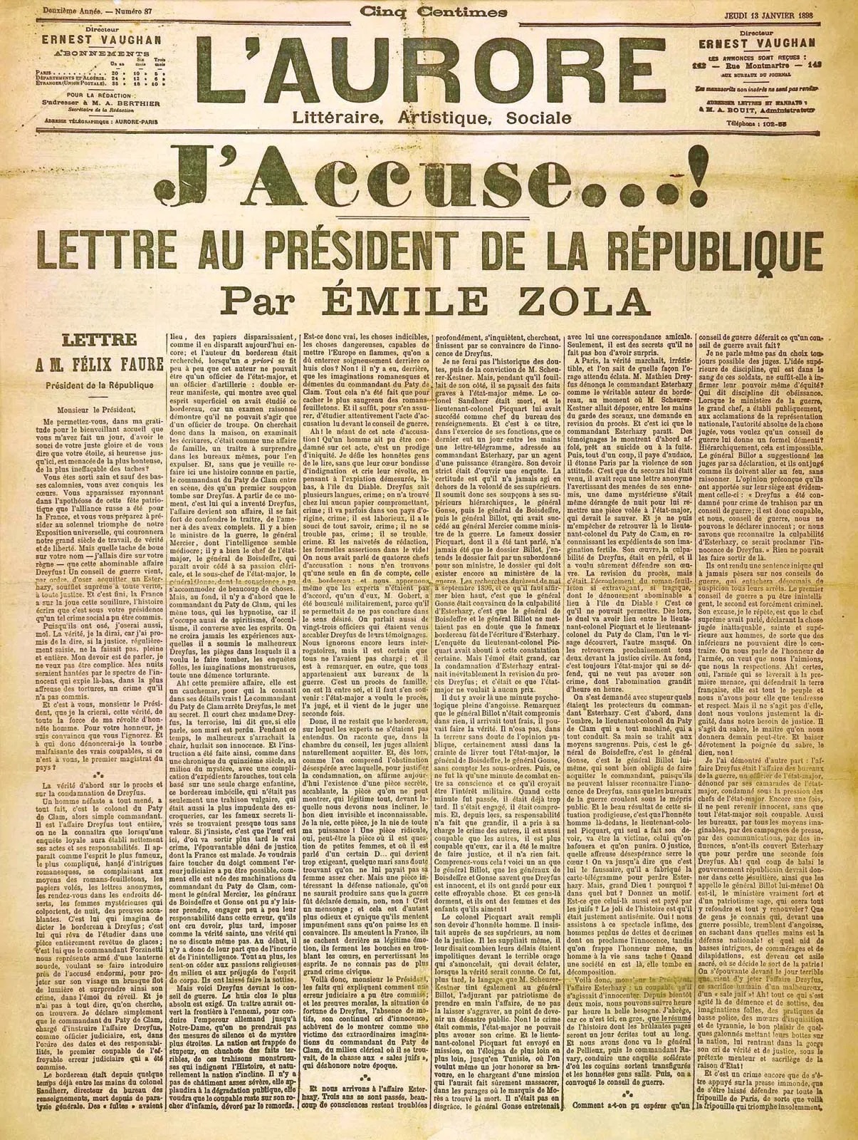 This dazzling description of the grandeur and beauty of a communistic world, alone, made Zola one of us. His noble, courageous intervention in an embittered combat for justice, in which he rose against an insolent and brutal militarism, and against all the forces of oppression and falsehood of a bourgeois society, was one of the great battles which brought nearer the decisive hour of victory for the laboring class.