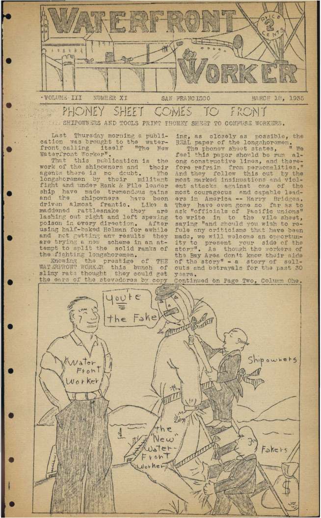 PDF of full issue: http://archive.ilwu.org/wp-content/uploads/2015/04/WaterfrontWorker_1935-3-18-OCR.pdf