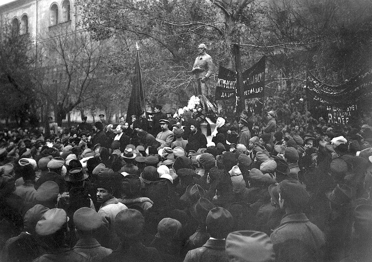 The first thing that engaged attention was organization of performances in different districts. Prior to the November Revolution the Section had organized in the districts a few performances of the Little and Art theatres. The November Revolution temporarily frightened away individuals in the theatrical profession from the Soviet circles. But they have gradually come back to the Soviet. A number of conferences with the Actors’ Trade Union resulted in an agreement by the terms of which the Moscow theatres (Little, Art and its studios, Chamber, Komissarjevski, “Bat,” etc.) consented to hold performances in the districts. And a number of such performances did take place. During the summer season the section staged many performances, aided by the casts of the Komissarjavskaya Theatre, House of Free Art, the “Bat” and by Voljanin’s players.