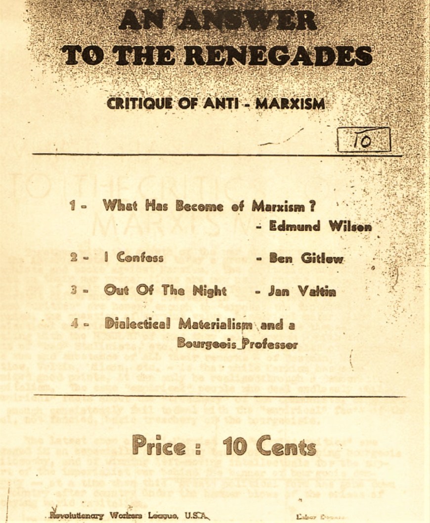 An Answer to the Renegades: Critique of Anti-Marxism by Revolutionary Workers League, Chicago, 1940.