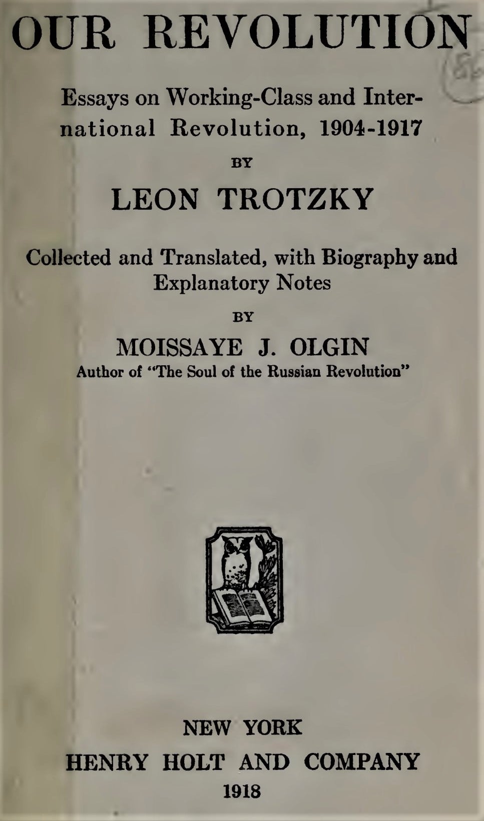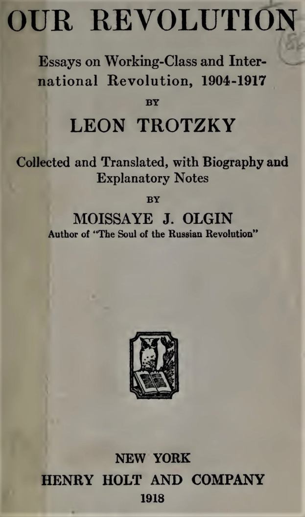 Our Revolution by Leon Trotzky. Translated and Edited by Moissaye J Olgin. Henry Holt and Company, New York, 1918.