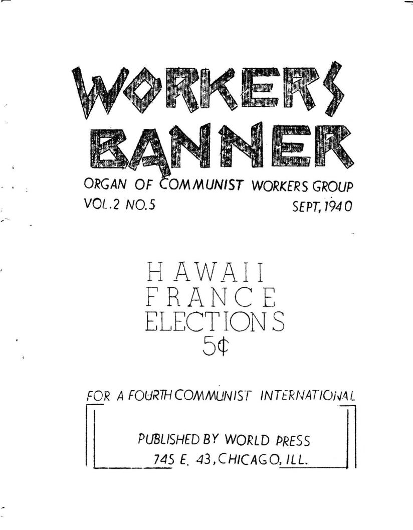 Workers Banner (Communist Workers Group). Vol. 2 No. 5. September, 1940.