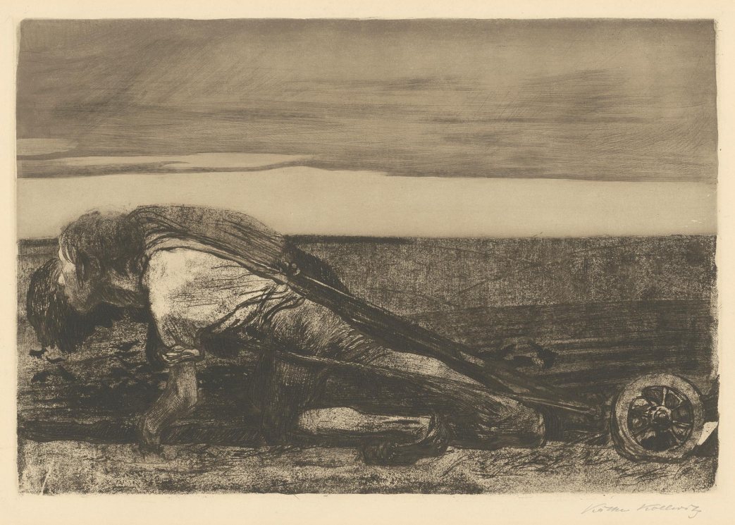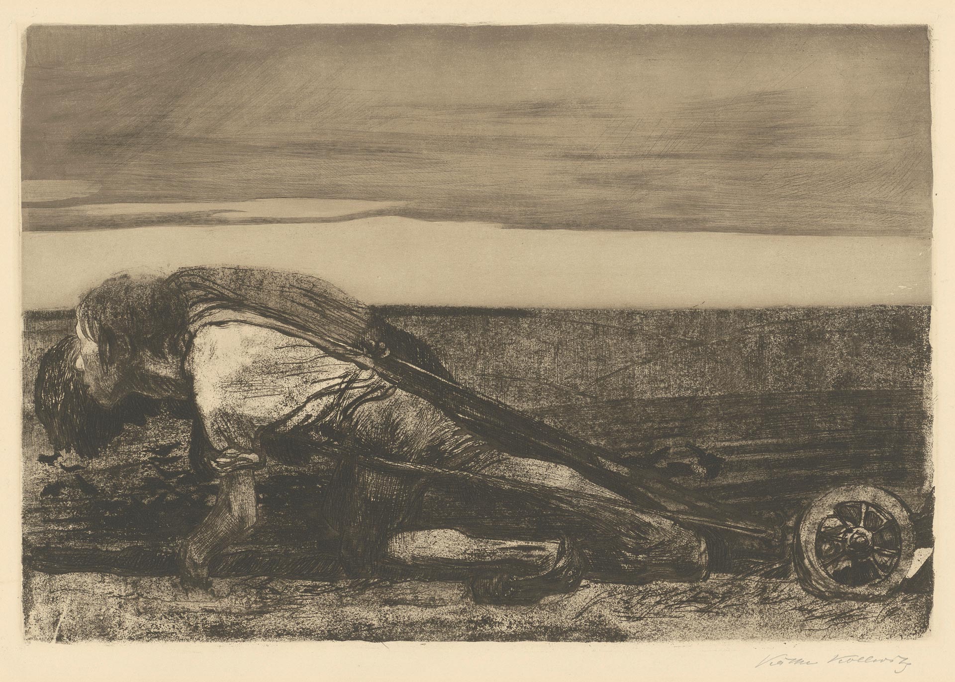 The work of this woman artist shows us that the working class is not only as she says, but that it has all the human weaknesses, pettiness and often anti-social passions, as well a real human strength, greatness and social purpose. Yet, whatever may be the immediate effect of the work of Kathe Kollwitz, two things are clear to us: when the present historical period has passed into time, her art will stand as a record of the struggle of the working class to build a new world; and, on the other hand, it will endure, as do the dramas of the ancient Greeks, because it has, with strong, simple technique, brought to conscious expression certain deeply-human and psychological problems and truths which are common to all men through all time.