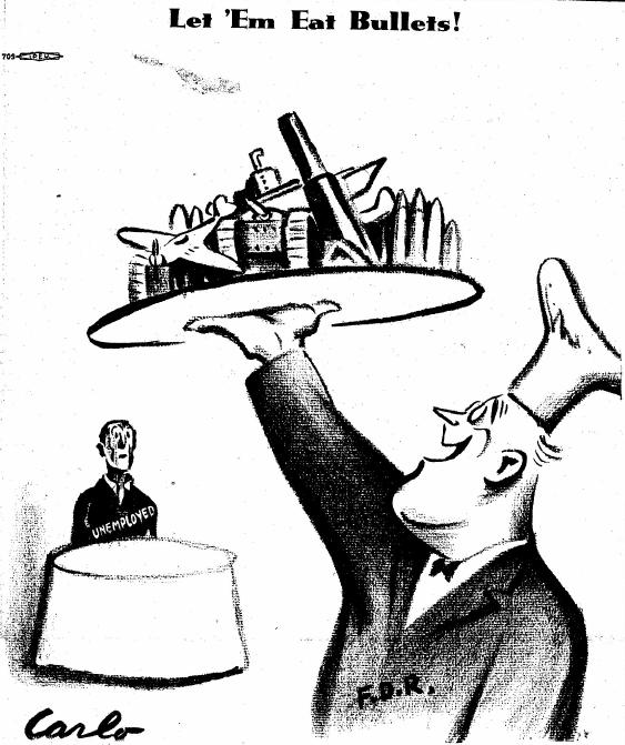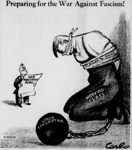 2. The intervention of the United States in the present war, or its clash with a victorious Germany or Japan at a later date, is predetermined by all the circumstances. All the realistic leaders of American capitalism clearly understand this. Only a few pacifist fools have the slightest doubt about it. The two main groups in the camp of U.S. imperialism–interventionist and so-called isolationists—differ only in regard to military strategy. Both are agreed on the policy of preparing to fight and grab. The stupendous arms program adopted by Congress has and can have only one meaning: military aggression in the near future on a world scale.