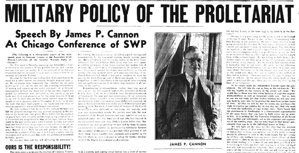 ‘The Military Policy of the Proletariat’ Speech by James P. Cannon from Socialist Appeal. Vol. 4 No. 41. October 12, 1940.