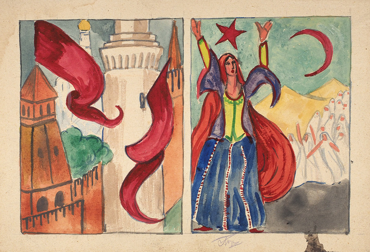 Each month of the existence of the Soviet Republic, by laying more securely the foundation of Communism is increasing the ferment among the women of the East. For the first time she appears in history at the Bureau of the Congress of Eastern Peoples at Baku. In all the regions of Soviet Russia in which there is a predominant Mussulman population, in the Eastern republics, a great work of enlightenment is going on among the masses of women. The Soviet idea is a sort of magic ring which attracts all the disinherited, which causes the barriers separating these races from the others to crumble, which unites the scattered forces. The women are demanding their right to instruction. About the sections for public instruction the Eastern women, who have cast aside the veil, are now rallying. The Tartars, the Persians, the Sarts, are struggling against this unhygienic attribute. At Teheran, where capital has already prepared the soil for a future — of Communism, a conference of women was held with this slogan: “Away with the Veils!”.