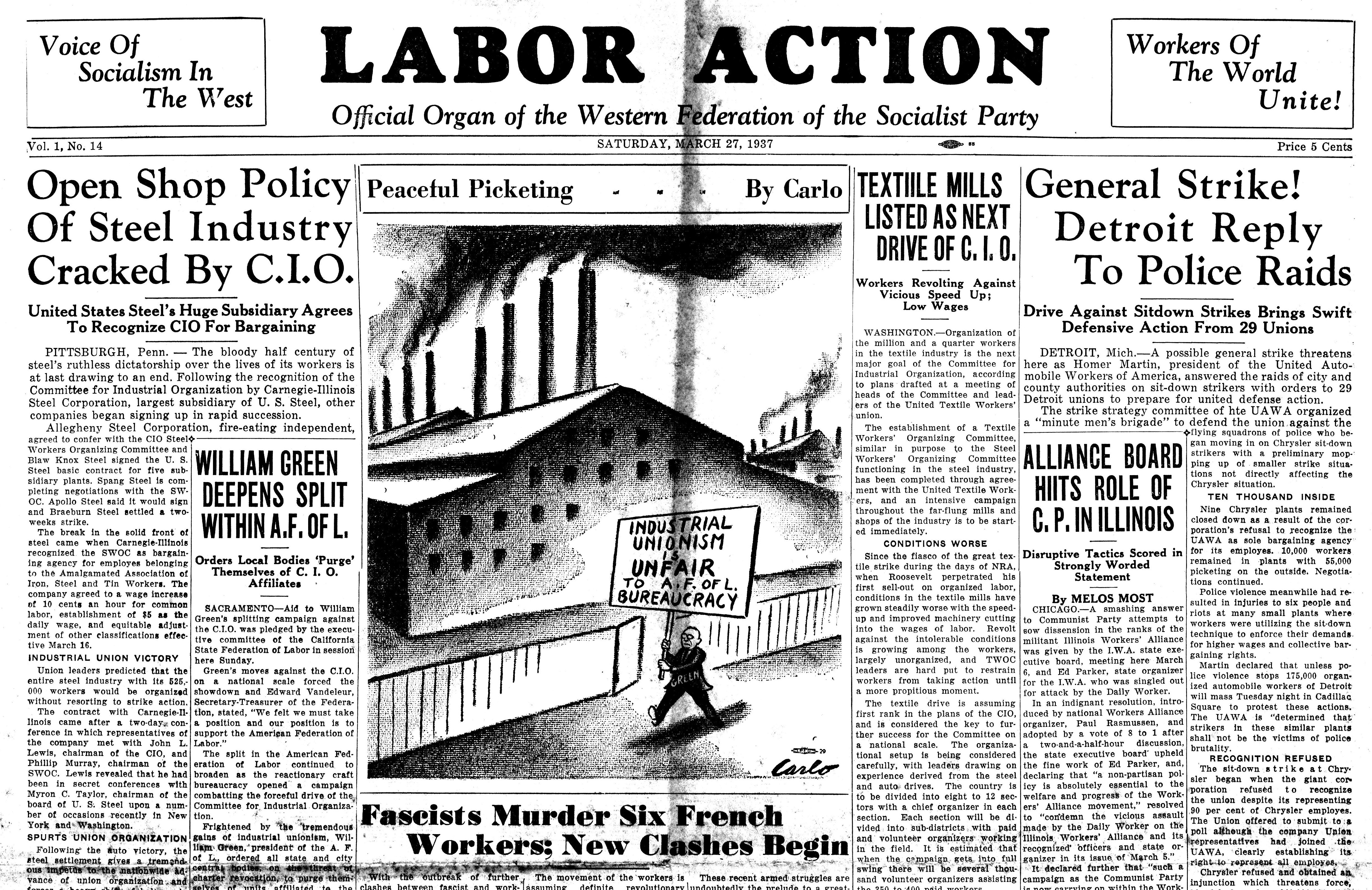 Labor Action (San Francisco). Vol. 1 No. 14. March 27, 1937.