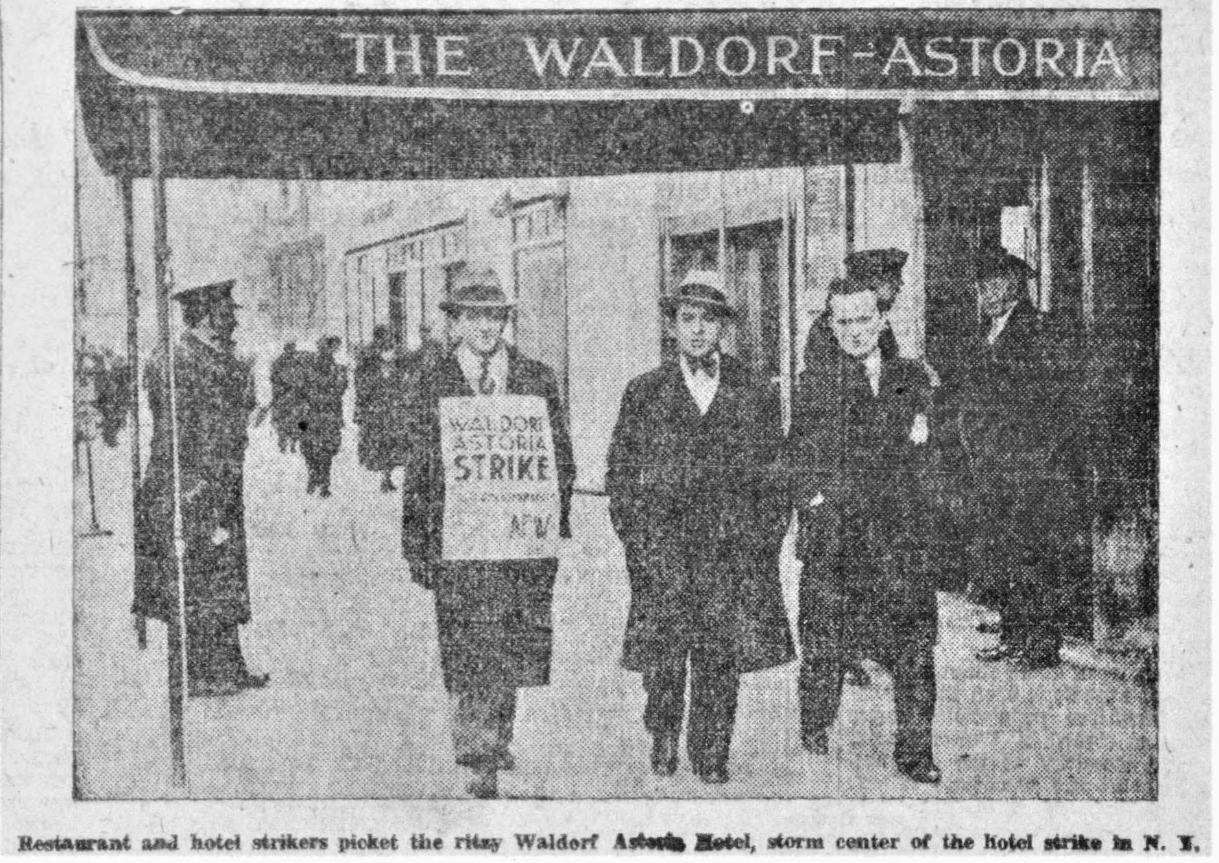 That the strike hadn’t spread to the other departments of the Waldorf was obvious. It has, however, at this writing, spread to include forty-one hotels in its scope.