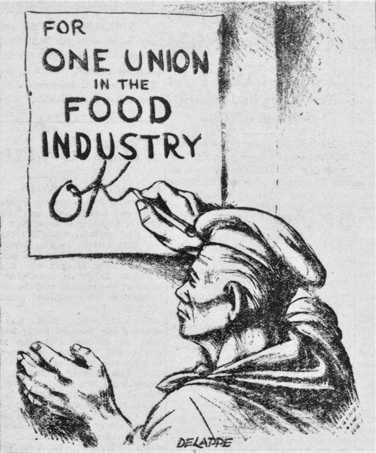 The A.F. of L. leaders played the part of strike breakers. “As usual,” one of the cooks’ helpers remarked grimly. It was engaged in swearing out injunctions against the striking hotel workers. They had applied for a court order to restrain the strikers from picketing.
