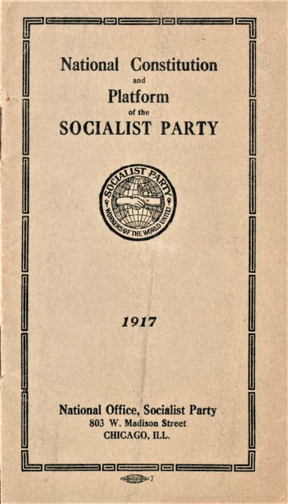 National Constitution and Platform of the Socialist Party. Adopted by National Referendum July 24, 1917. Published by the National Office of the Socialist Party, Chicago. 1917.