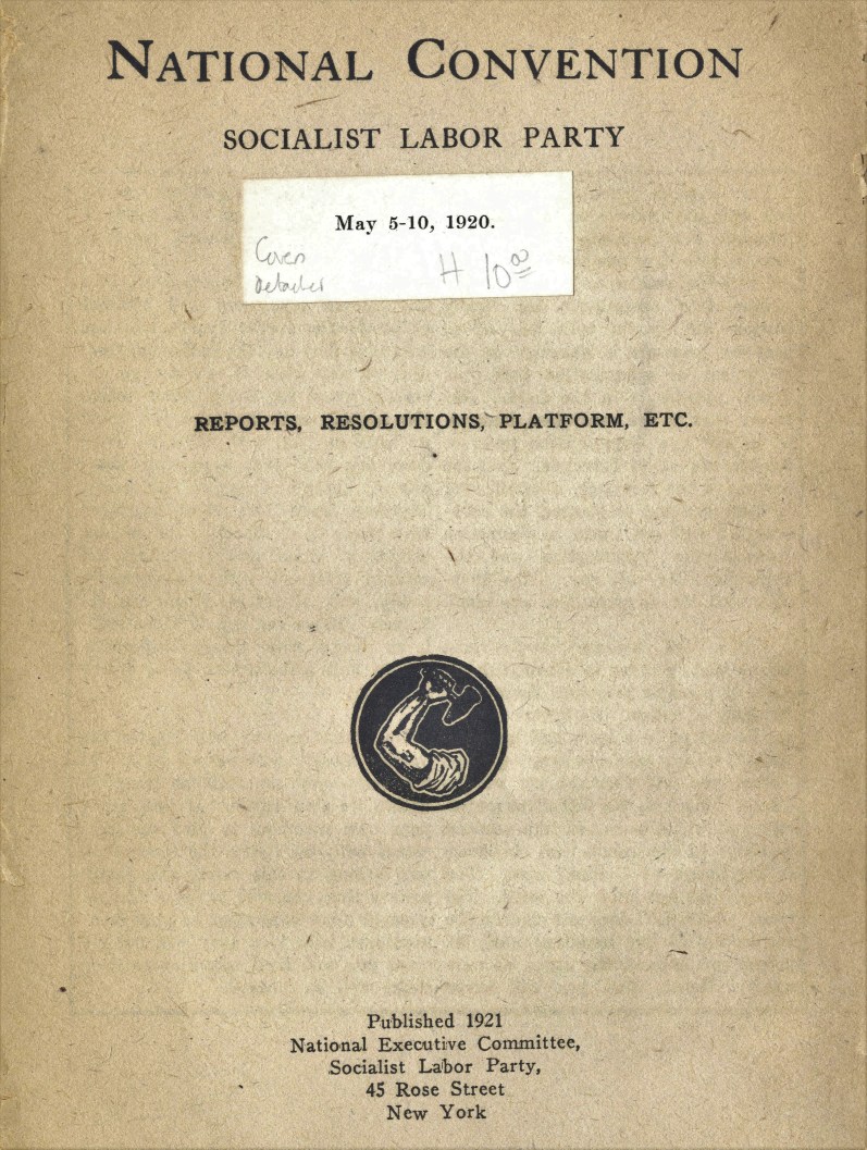 S.L.P. National Convention May 5-10, 1920 Reports, Resolutions, Etc. National Executive Committee, Socialist Labor Party, New York. 1921.