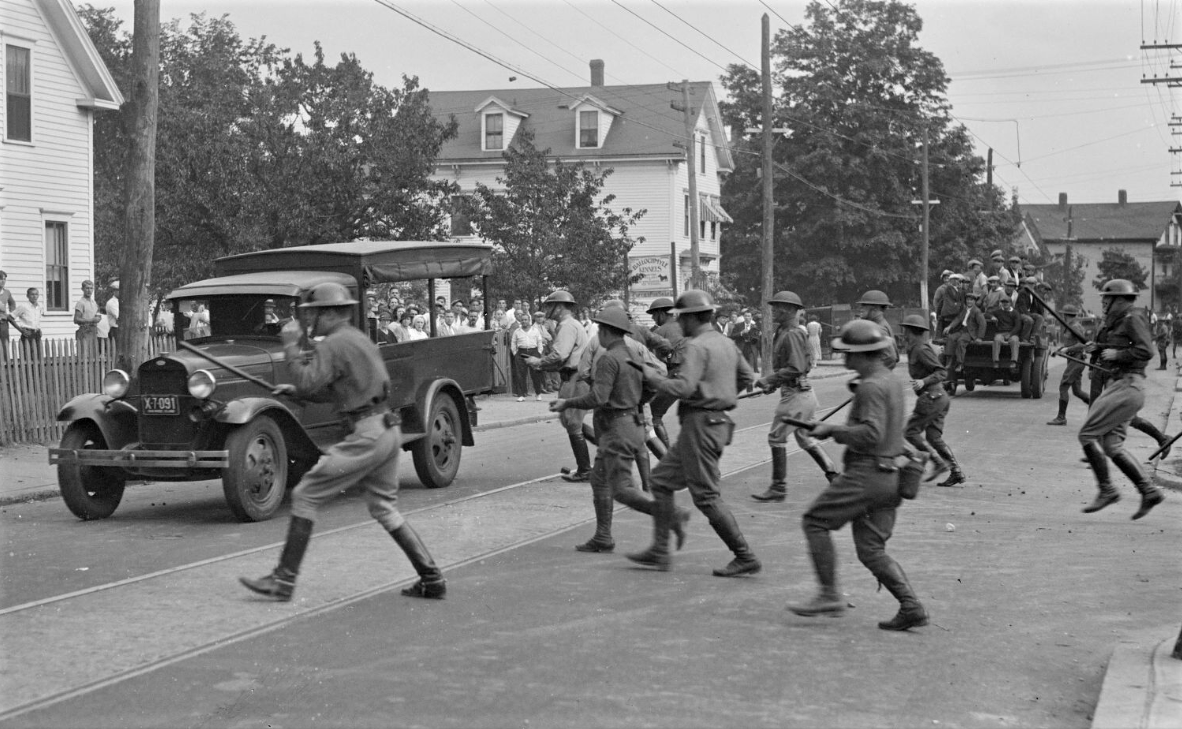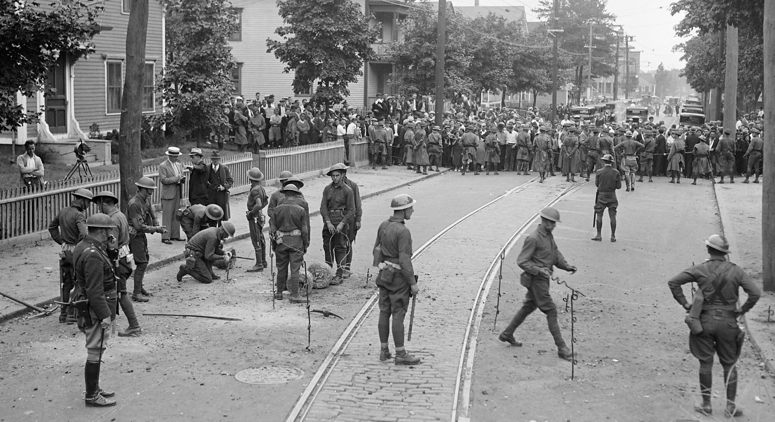 Five thousand swelled the workers’ ranks, battling far into the night. More than 25 are treated for injuries, including a striker with a fractured skull. A woman and two children topple unconscious in their nearby homes from gas. Meanwhile, the Governor mobilizes a skeleton regiment at a Providence armory.