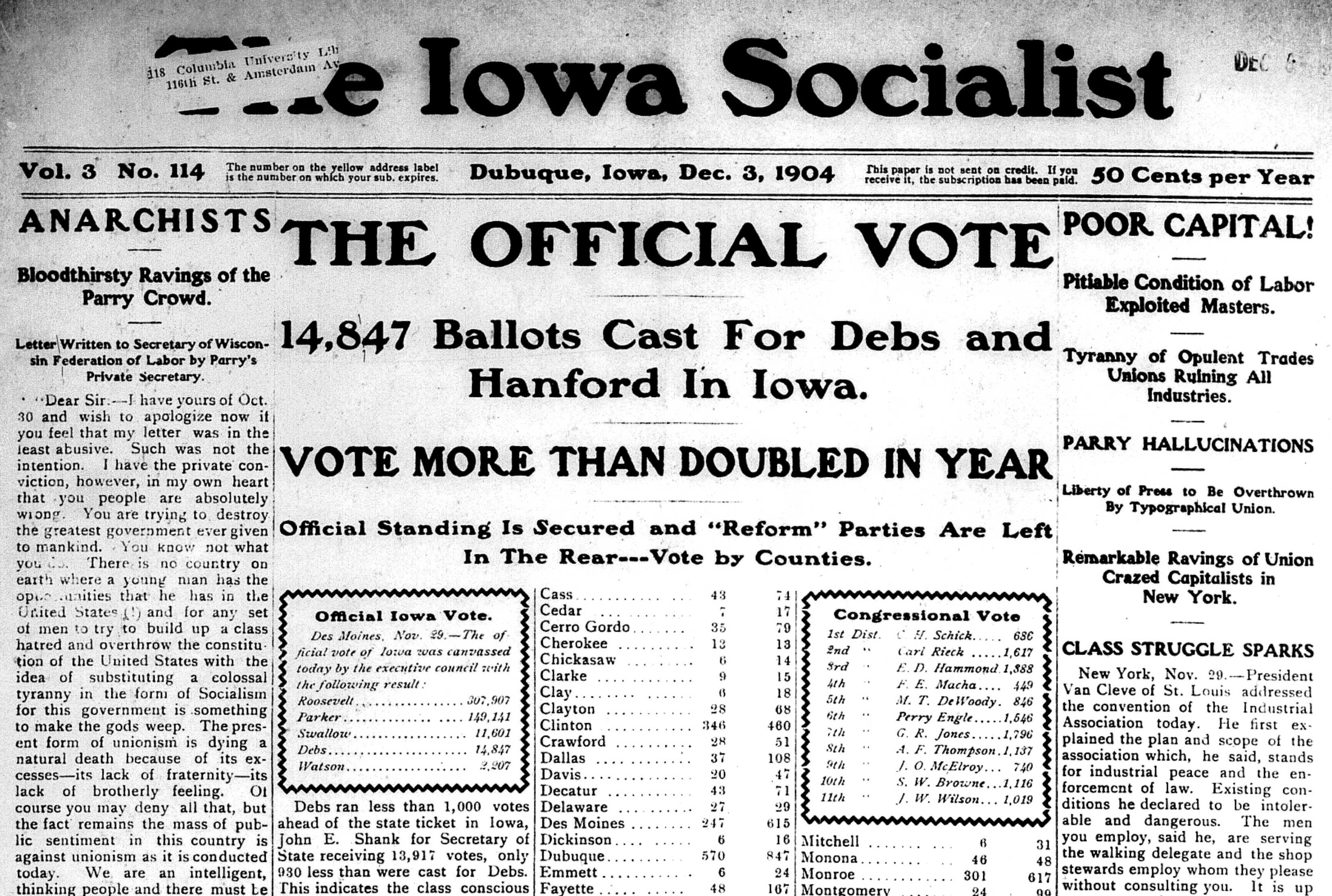 The Iowa Socialist started in the fall of 1902 and published weekly until December 1904. Owned and published by the Iowa Socialist Publishing Company, founded by cartoonist A.A. Triller and Ernest Holtz. The paper is perhaps the first Socialist Party publication edited by a woman, Carrie L. Johnson. The paper is indicative of the politics of the early Socialist Party of the rural Midwest.