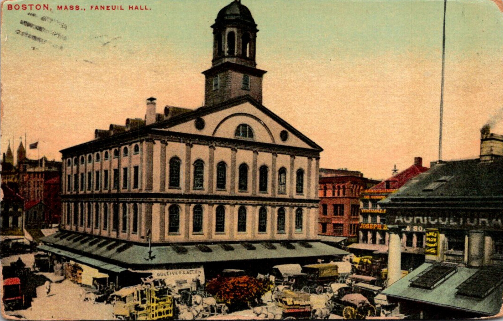 When at 11:15 Mr. Debs emerged from Faneuil hall the outburst was deafening. The candidate was lifted over the heads of the crowd and carried to the speaker’s stand in the center of Faneuil hall square. Cheer after cheer went up, banners were waved and hats were thrown into the air. Mr. Debs repeatedly tried to allay the noise which was so loud that only those within a few feet of the stand could hear him. He bespoke great things for the party he represents this fall and said: