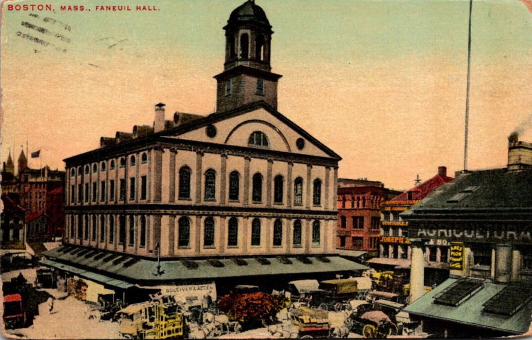 Inside the hall the crowd seated was only a small part of the real audience present. They hung off the balcony, up over the portraits of Sam Adams and John Hancock. They filled the space in front of the platform so that the reporters had to fight for their places. They forced their way up on the platform and pressed their way forward to the very chairs occupied by the speakers.