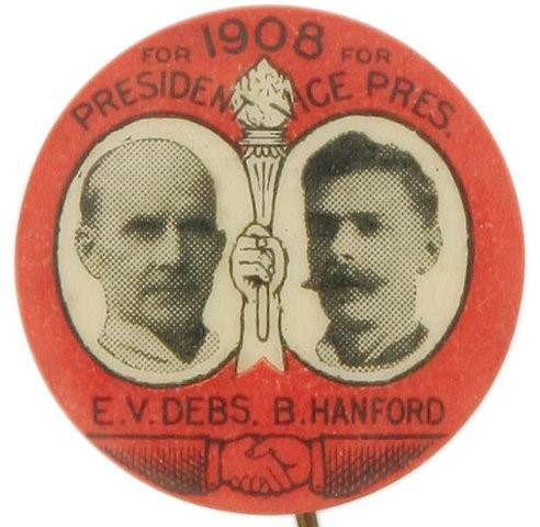 The Cradle of Liberty got the wildest rocking both inside and out it has had in many years. As early as 6 o’clock the reds began to gather and by 7:30 o’clock the doors had to be closed, as everything was filled to the limit. Crowds surged to and fro all around the building, waving the red tri-cornered flags and shouting “Hurrah for Debs and Hanford.”