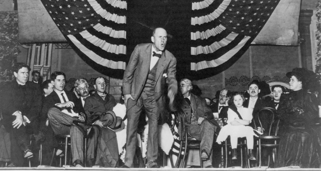 Red flags, red language and red enthusiasm swept everything before them at Faneuil hall on the night of October 5 when the socialists of Boston waited patiently until nearly 10 o’clock to welcome their standard bearer, Eugene V. Debs of Illinois [Indiana], locomotive fireman, grocer, legislator, labor agitator, strike director, convert to socialism and, like Bryan, three times a candidate for president.