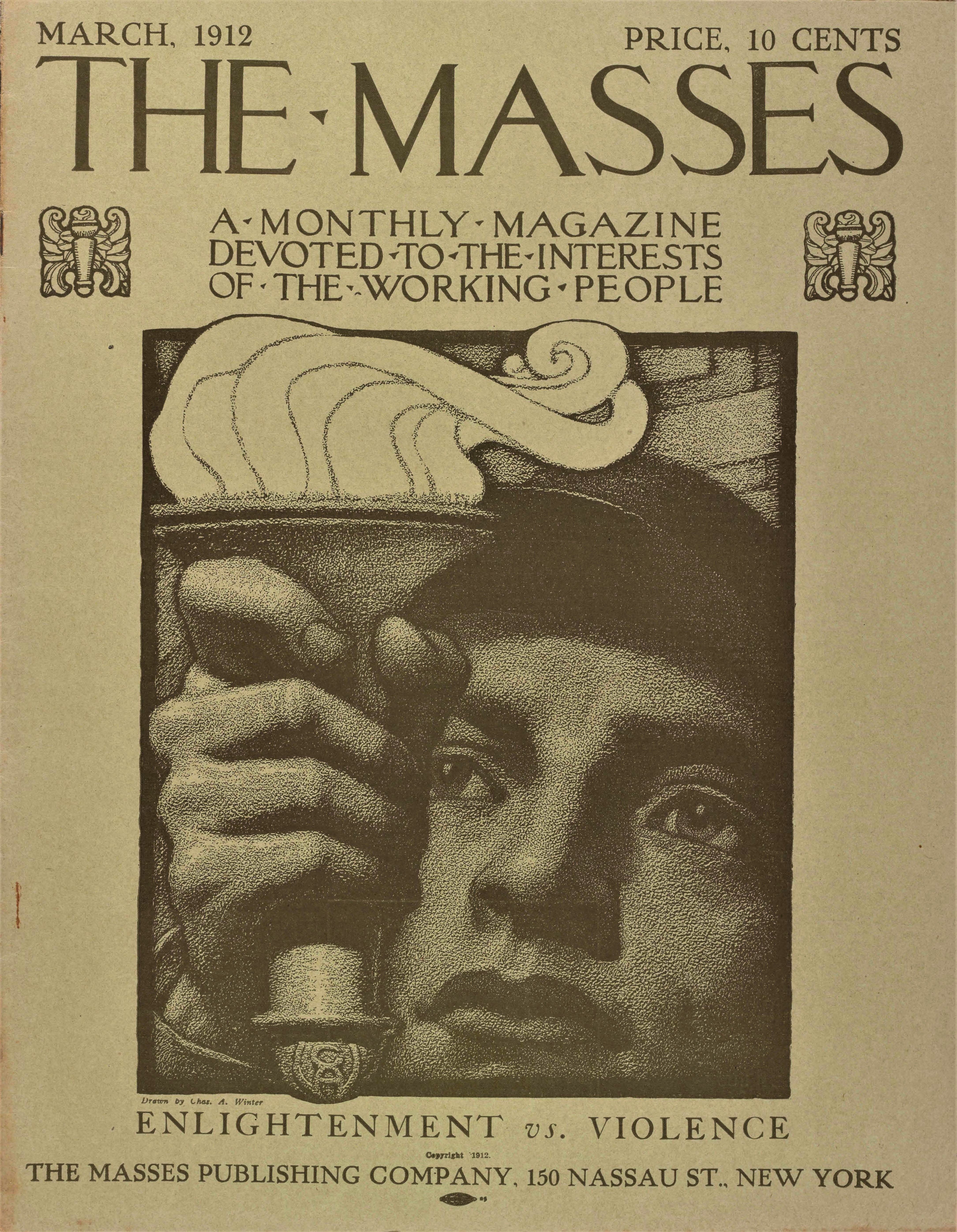 The Masses is among the most important, and best, radical journals of 20th century America. It was started in 1911 as an illustrated socialist monthly by Dutch immigrant Piet Vlag, who shortly left the magazine. It was then edited by Max Eastman who wrote in his first editorial: “A Free Magazine — This magazine is owned and published cooperatively by its editors. It has no dividends to pay, and nobody is trying to make money out of it. A revolutionary and not a reform magazine; a magazine with a sense of humour and no respect for the respectable; frank; arrogant; impertinent; searching for true causes; a magazine directed against rigidity and dogma wherever it is found; printing what is too naked or true for a money-making press; a magazine whose final policy is to do as it pleases and conciliate nobody, not even its readers — There is a field for this publication in America. Help us to find it.” The Masses successfully combined arts and politics and was the voice of urban, cosmopolitan, liberatory socialism. It became the leading anti-war voice in the run-up to World War One and helped to popularize industrial unions and support of workers strikes. It was sexually and culturally emancipatory, which placed it both politically and socially and odds the leadership of the Socialist Party, which also found support in its pages. The art, art criticism, and literature it featured was all imbued with its, increasing, radicalism. Floyd Dell was it literature editor and saw to the publication of important works and writers. Its radicalism and anti-war stance brought Federal charges against its editors for attempting to disrupt conscription during World War One which closed the paper in 1917. The editors returned in early 1918 with the adopted the name of William Lloyd Garrison’s The Liberator, which continued the interest in culture and the arts as well as the aesthetic of The Masses. Contributors to this essential publication of the US left included: Sherwood Anderson, Cornelia Barns, George Bellows, Louise Bryant, Arthur B. Davies, Dorothy Day, Floyd Dell, Max Eastman, Wanda Gag, Jack London, Amy Lowell, Mabel Dodge Luhan, Inez Milholland, Robert Minor, John Reed, Boardman Robinson, Carl Sandburg, John French Sloan, Upton Sinclair, Louis Untermeyer, Mary Heaton Vorse, and Art Young.