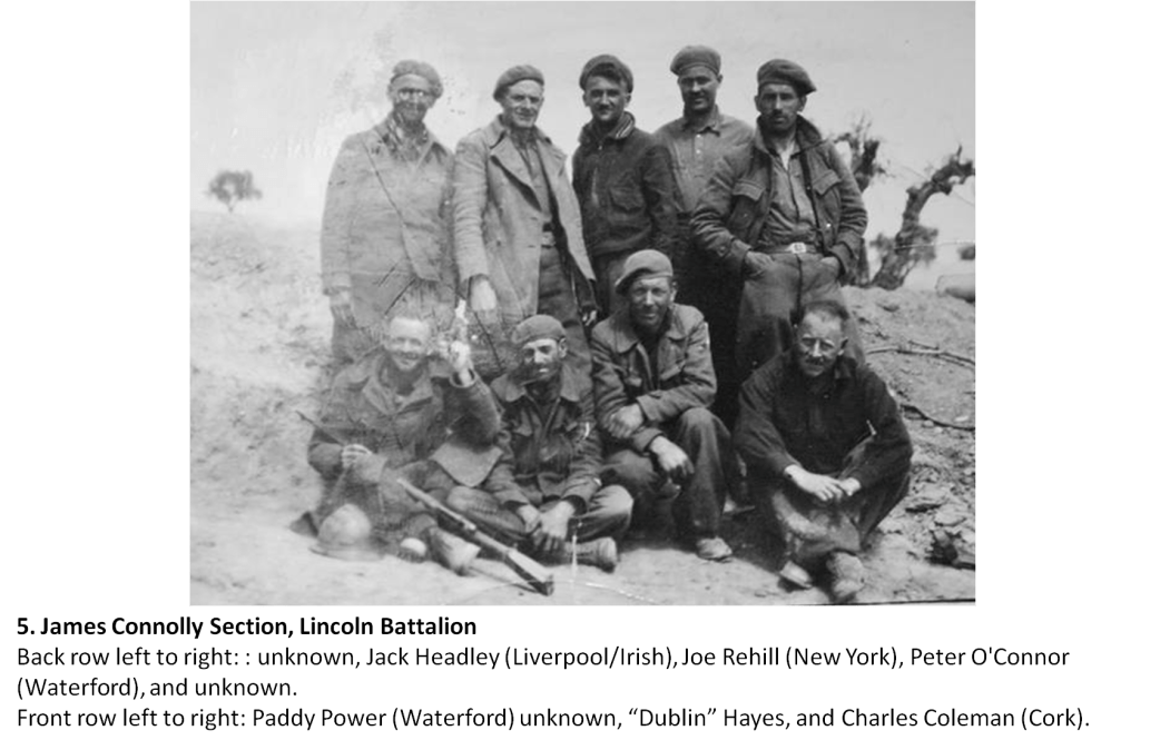 Of the 450 who went over that day in a most desperate attack, 147 quickly fell dead in a sheet of machine gun fire, including comrade Henry, killed instantly with a shot to the head. The poet and Republican Congress leader Charlie Donnelly then took command of the shattered Column only to be killed hours later, his body lying in no-mans-land for two weeks before it could be recovered. The Brigade and its Connolly Column suffered horribly, losing members Liam Tumilson (Belfast), Michael Blaser-Browne (New York), Danny Boyle (Belfast), Kit Conway (Tipperary), Pat Curley (Dumbarton), John Dolan (Donegal), Charlie Donnelly (Tyrone), Bill Henry (Belfast), Robert. M Hilliard (Killarney), Samuel Lee (London-Jewish), Paddy McDaid (Dublin), Bert McElroy (Louth), Eamonn McGrotty (Derry), Thomas Morris (Boston), Thomas T. O’Brien, Dick O’Neill (Belfast), Maurice Quinlan (Waterford), and Michael Russell (Ennis) in the desperate fight on fascism those brutal, heroic days. I have been unable to locate a picture of comrade Bill Henry.