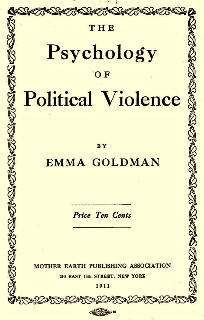 The Psychology of Political Violence by Emma Goldman. Mother Earth Publishing Association, New York. 1911.