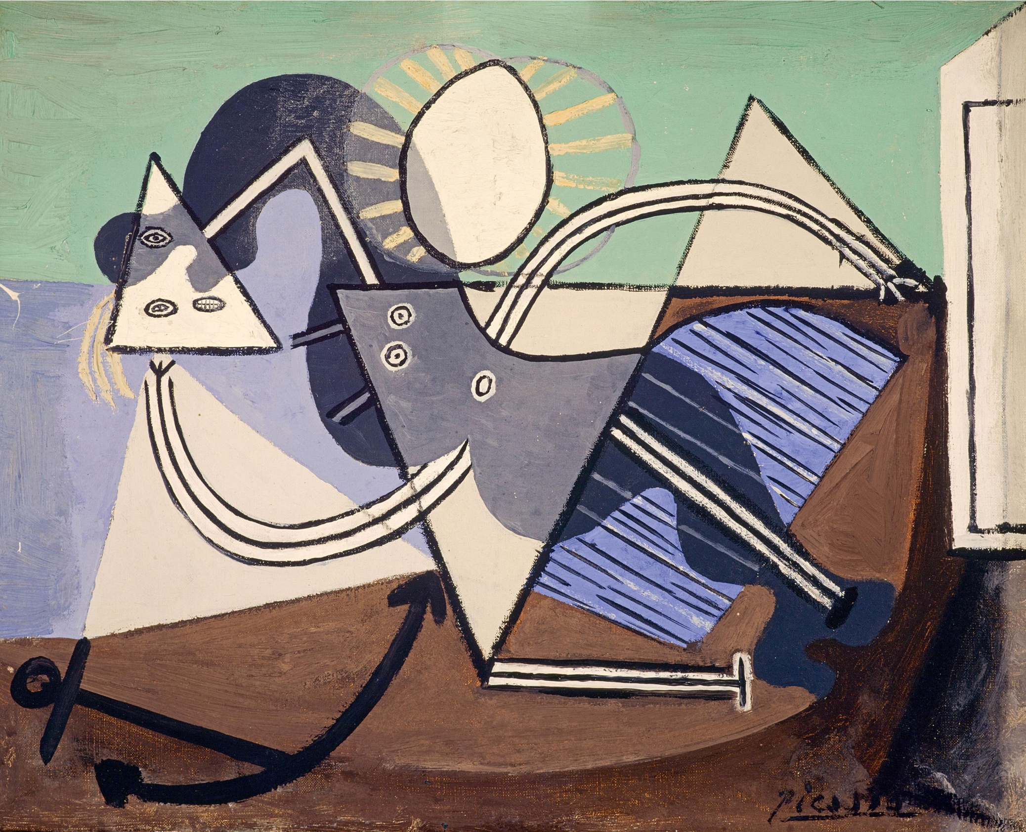 Strangely Picasso in his own late work repudiates form in the sense of volume. Five monumental paintings of 1933-4 display a frankly two-dimensional pattern in which color circulates like a warm bloodstream through rhythmic arabesques. The old themes are used: the woman and her mirror, the Red Hat, the woman holding a book, but there is something new in the monumental patterns akin to Surrealist forms but on a grand scale. Picasso moving in the main line of our cultural development has also come to the end of a road. The ruling class of a dying society is totally unable to offer any new content for a living art. But while Chirico offers us no beginning, one discerns in these paintings of Picasso a possibility of a new art-either mural or moving as in cinema. Following in the tradition of humanism, Picasso has carried it to its logical end-the destruction of man-and now he destroys the abstract form in which he had so skillfully embalmed him. It is left for a new and progressive class to carry on at this point-for only the working class is healthy and strong enough to build a new humanism on a constructive basis and to solve the critical problem of the human relationships in society.