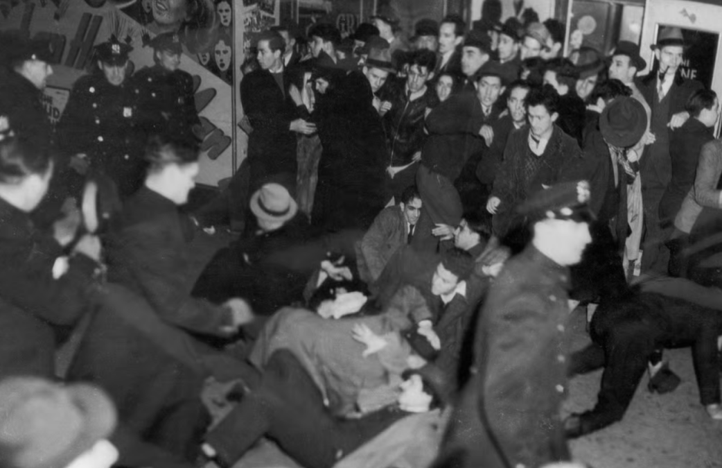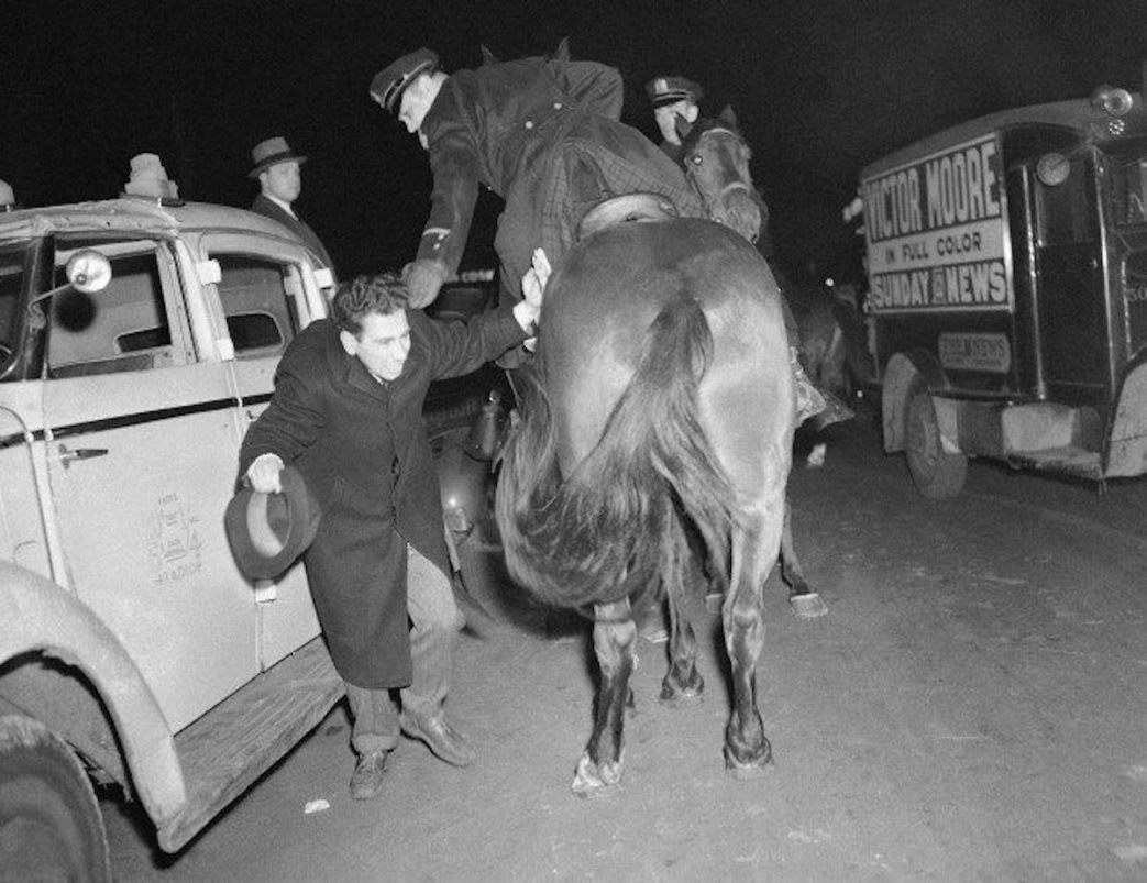 “We are all too familiar with the actions of the police bent on ‘law and order’; the alarming thing in this case is that the city administration, for all Its anti-fascist convictions, gave sanction to the police in what has become their occupational antagonism to all picket lines. Newbold Morris, acting mayor, issued a statement asking the public to show their support of democratic institutions by shunning the assemblage as ‘one would a pestilence.’ A pestilence is not overcome by shunning it; the only effective popular answer to such meetings as that of the Bund is counter-demonstration. The two left groups, the Socialist Workers Party and the Young People’s Socialist League, who insisted on exercising their right to picket, discovered that they and not the Nazis were the ‘enemy.’ They were dispersed by force – and the police become the heroes of the newspapers, of Mayor LaGuardia, and unquestionably of the German-American bund.” (The Nation, Mar. 4, 1939)