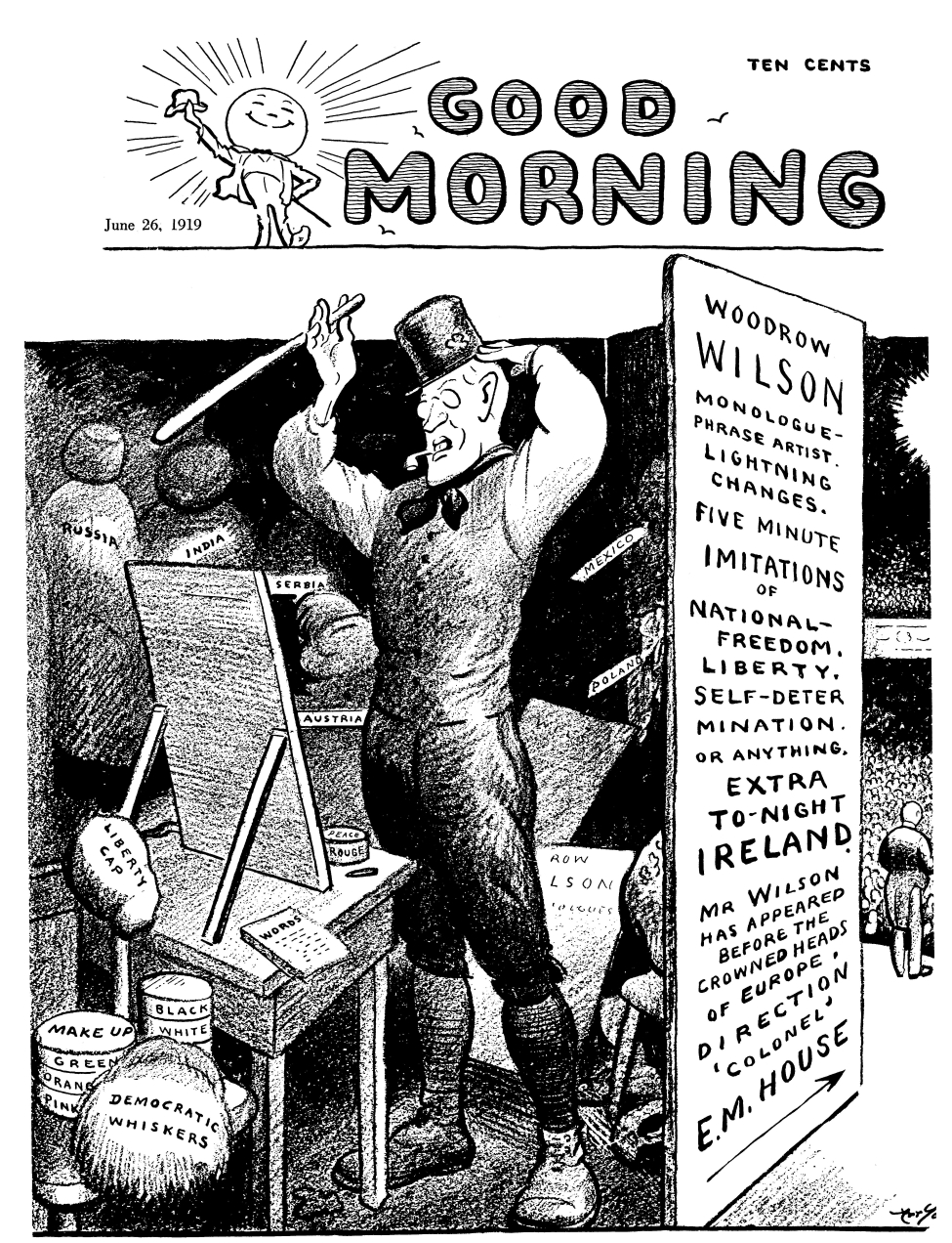 Good Morning was a (wonderful) left-wing illustrated humor magazine published bi-weekly from May 1919 until October 1921 by Ellis O. Jones and legendary radical cartoonist Art Young. Both had worked together earlier on The Masses. Good Morning was funded by donations and was forced to decrease in frequency from weekly to semi-monthly to monthly with a press run between 4 and 10 thousand, finally folding in late 1921.