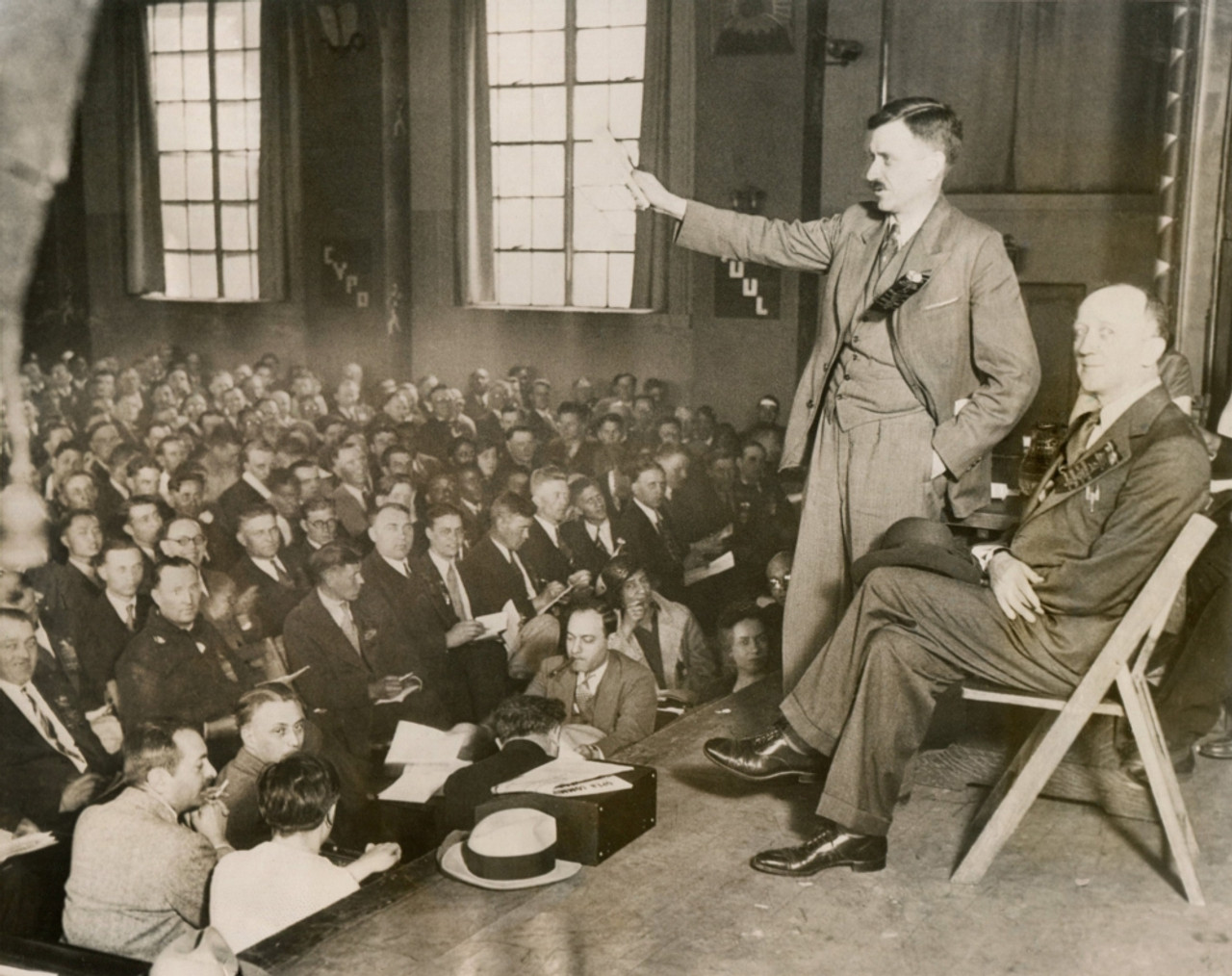 This Liberty League is the greatest threat to American liberties today. Its organizers and contributors are headed by the munitions makers, the du Ponts, who made 1,000 per cent profits out of the last World War, who smash trade unions, who finance reaction everywhere. Morgan is its guiding genius. Al Smith is its mass leader, to give the “democratic” face; Father Coughlin and Hugh Johnson are its come-on men.