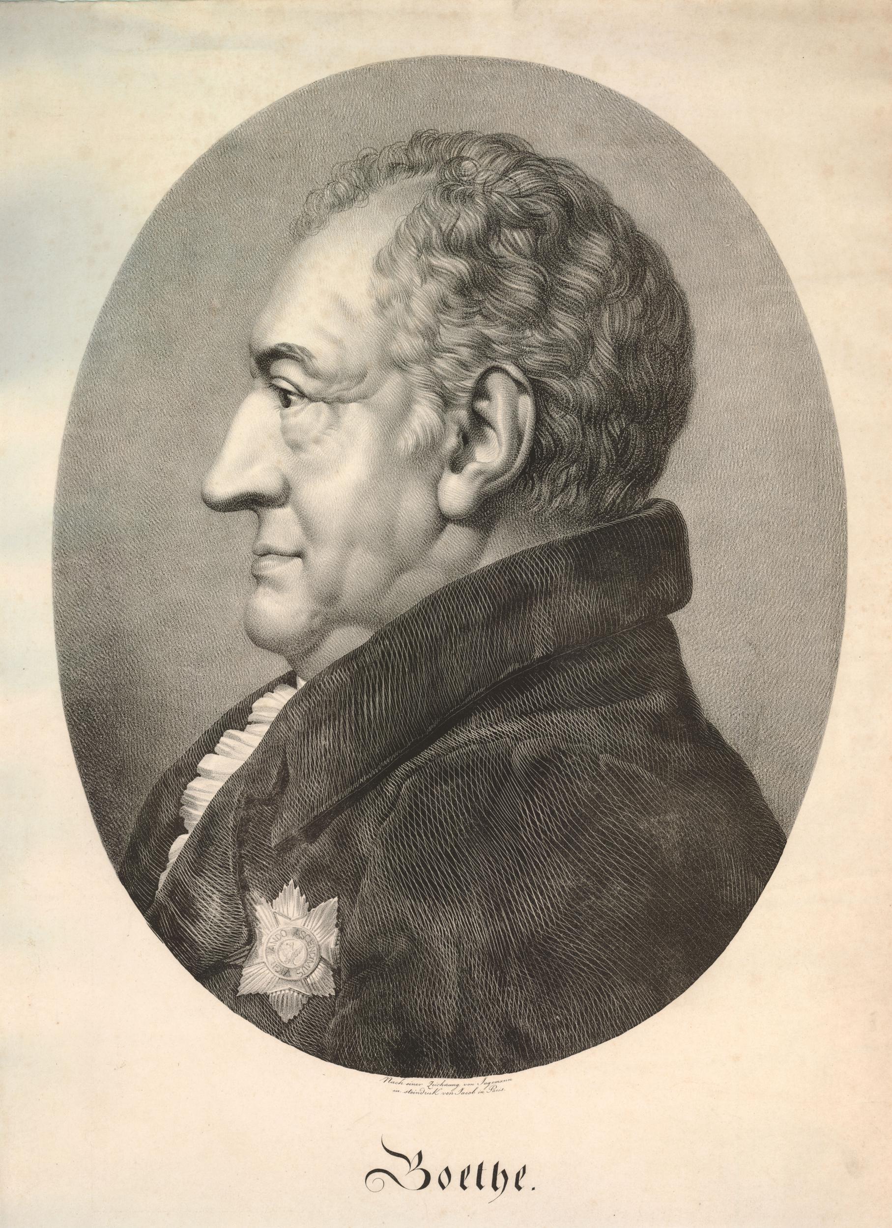 “Naturally we cannot speak in detail here of Goethe himself. We are calling attention to only one point. Goethe stands in his works in a double relation to the German society of his time. Sometimes he is hostile to it: he tries to escape its odiousness, as in the “Iphigenia” and in general during the Italian journey; he rebels against it as Gotz, Prometheus and Faust; he pours out on it his bitterest scorn as Mephistopheles. Sometimes, on the contrary, he is friendly to it, accommodating, as in most of the tame Epigrams and in many prose writings, celebrates it, as in the Masquerades, even defends it against the intruding historical movement, particularly in all the writings where he happens to speak of the French revolution. It is not only single sides of German life that Goethe accepts, as opposed to others that are repugnant to him. More commonly it is the various moods in which he finds himself; it is the persistent struggle in himself between the poet of genius, disgusted by the wretchedness of his surroundings, and the Frankfurt alderman’s cautious child, the privy-councillor of Weimar, who sees himself forced to make a truce with it and to get used to it. Thus Goethe is now colossal, now petty: now a defiant, ironical, world-scorning genius, now a calculating, complacent, narrow philistine. Even Goethe was unable to overcome the wretchedness of German life; on the contrary, it overcame him, and this victory over the greatest German is the best proof that it cannot be conquered by the individual. Goethe was too universal, too active a nature, too fleshly to seek escape from this wretchedness in a flight, like Schiller’s, to the Kantian ideal: he was too sharp-sighted not to see how this flight finally reduced itself to the exchange of a commonplace for a transcendental misery. His temperament, his energies, his whole spiritual tendency directed him towards practical life, and the practical life that he met with, was miserable. In this dilemma, — to exist in a sphere of life that he must despise, and yet to be fettered to this sphere, as the only one in which he could fulfill himself — in this dilemma Goethe continually found himself, and the older he became, the more did the powerful poet retire, de guerre lasse, behind the insignificant Weimar minister. We are not throwing it up to Goethe, d la Boerne and Menzel, that he was not a liberal, but that he could even be a philistine at times, not that he was incapable of any enthusiasm for German freedom, but that he sacrificed his occasionally irrepressible, sounder aesthetic feeling to a small-town aversion from every great contemporary historical movement; not that he was a courtier, but that at the time when a Napoleon was cleaning out the vast Augeanstables of Germany, he could manage with a ceremonial seriousness the most trivial affairs and the menus plaisirs of one of the most trivial little German courts. In general, we are reproaching him neither from moral nor from partisan standpoints, but chiefly from aesthetic and historical standpoints; we are measuring Goethe neither by a moral, nor by a political, nor by a “human” standard. We cannot undertake here to represent Goethe in connection with his whole age, with his literary forerunners and contemporaries, in his development and social position. We are therefore limiting ourselves simply to the statement of the fact.”