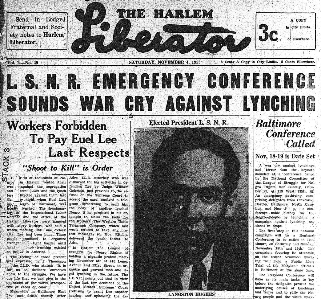 An important document of Black Communism in the United States. This program was discussed and adopted at the Emergency National Committee Meeting of the League held in Harlem in October, 1933. The meeting was attended by a who’s who of Black Marxism (see the Board listed below), and was responding to the upsurge of Black political action of the period, particularly tied to the Scottsboro and Angelo Herndon cases. Langston Hughes was elected interim President, a new board and organizational norms put in place, a Bill of Rights drafted, and this document proposed for discussion in anticipation of a National Conference in May, 1934. The successor to the American Negro Labor Congress, The League of Struggle for Negro Rights was organized by the Communist Party in 1930. With the end of the Third Period and the beginning of the Popular Front, the League was closed and the CP shifted focus to the National Negro Congress in 1935.