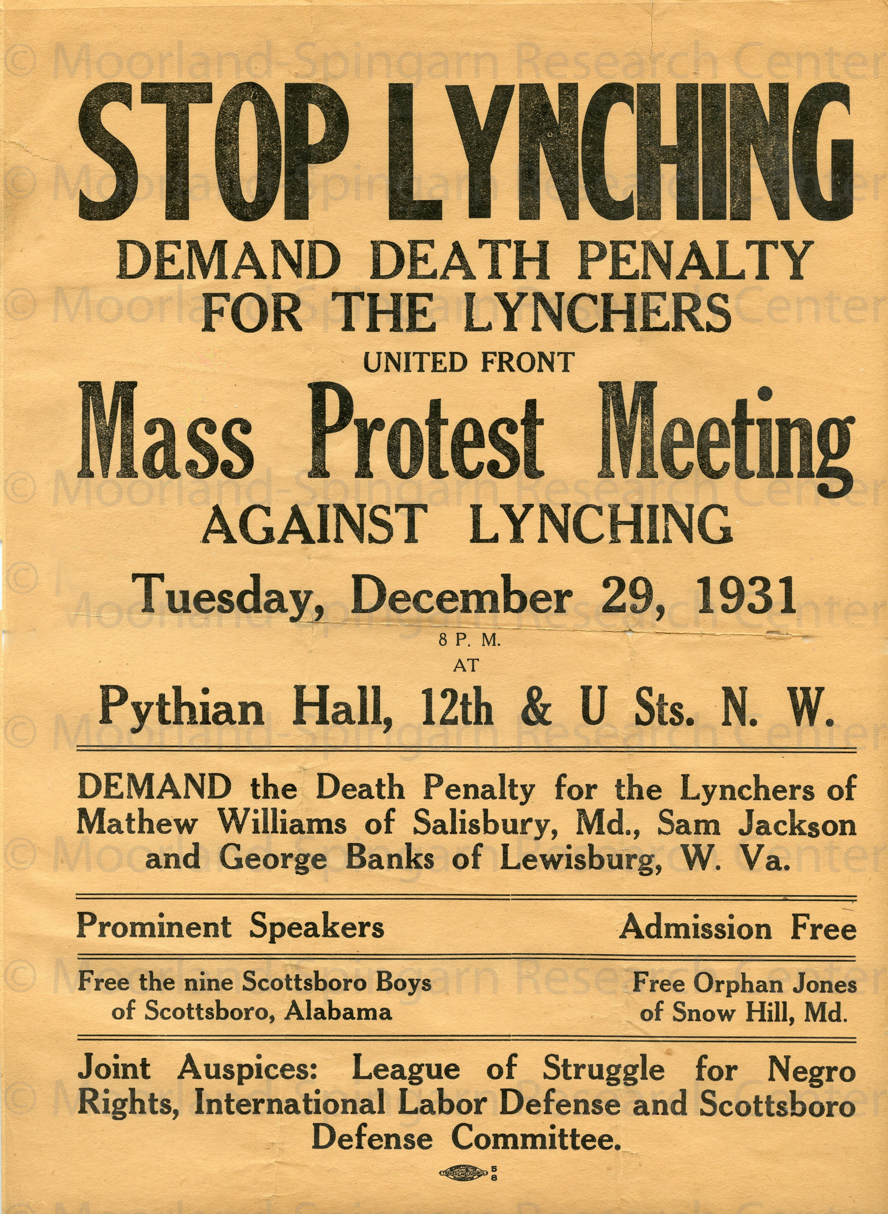 I. Struggle Against Lynching and All Forms of Terror, Violence and Abuse Against Negroes