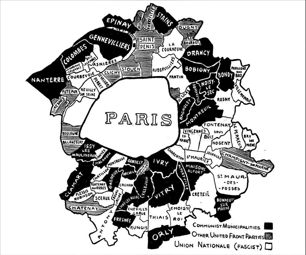 A report on France’s May 12, 1935 national municipal elections in which the Popular Front scored major breakthroughs, particularly in the suburbs of Paris; a portent of its national victory the following year.