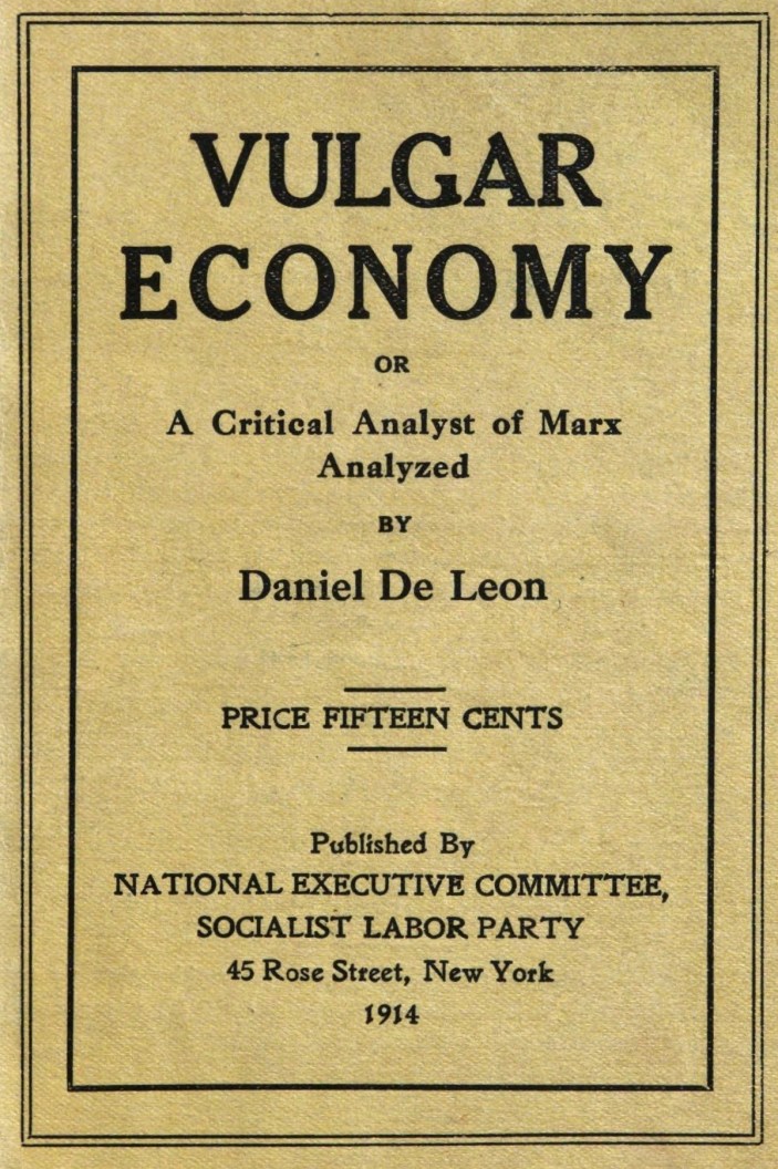 Vulgar Economy, A Critical Analyst of Marx Analyzed by Daniel De Leon. Published by the National Executive Committee, Socialist Labor Party, New York. 1914.