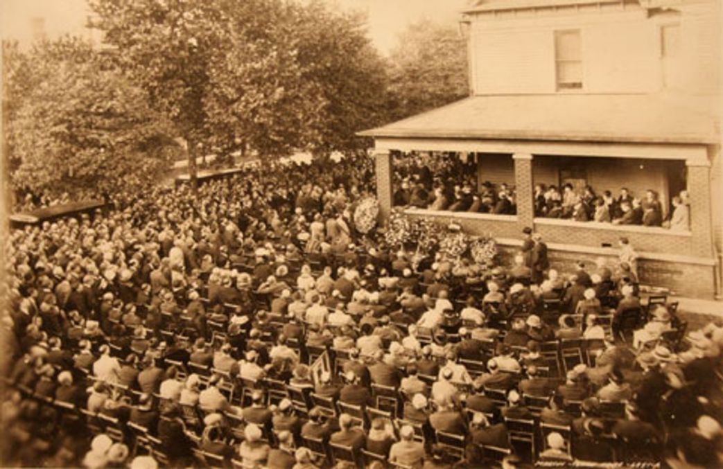 Outside as he talked to us the automobiles went by, covered with flags, and the sound of the parade came drifting down…Looking through the darkened windows we watched the people. As they passed the house they motioned or pointed toward it, with expression compounded half of eager malice, and half of a sort of fear. “That’s where Gene Debs lives,” you could see them saying, as one would say, “The House of the Traitor…”