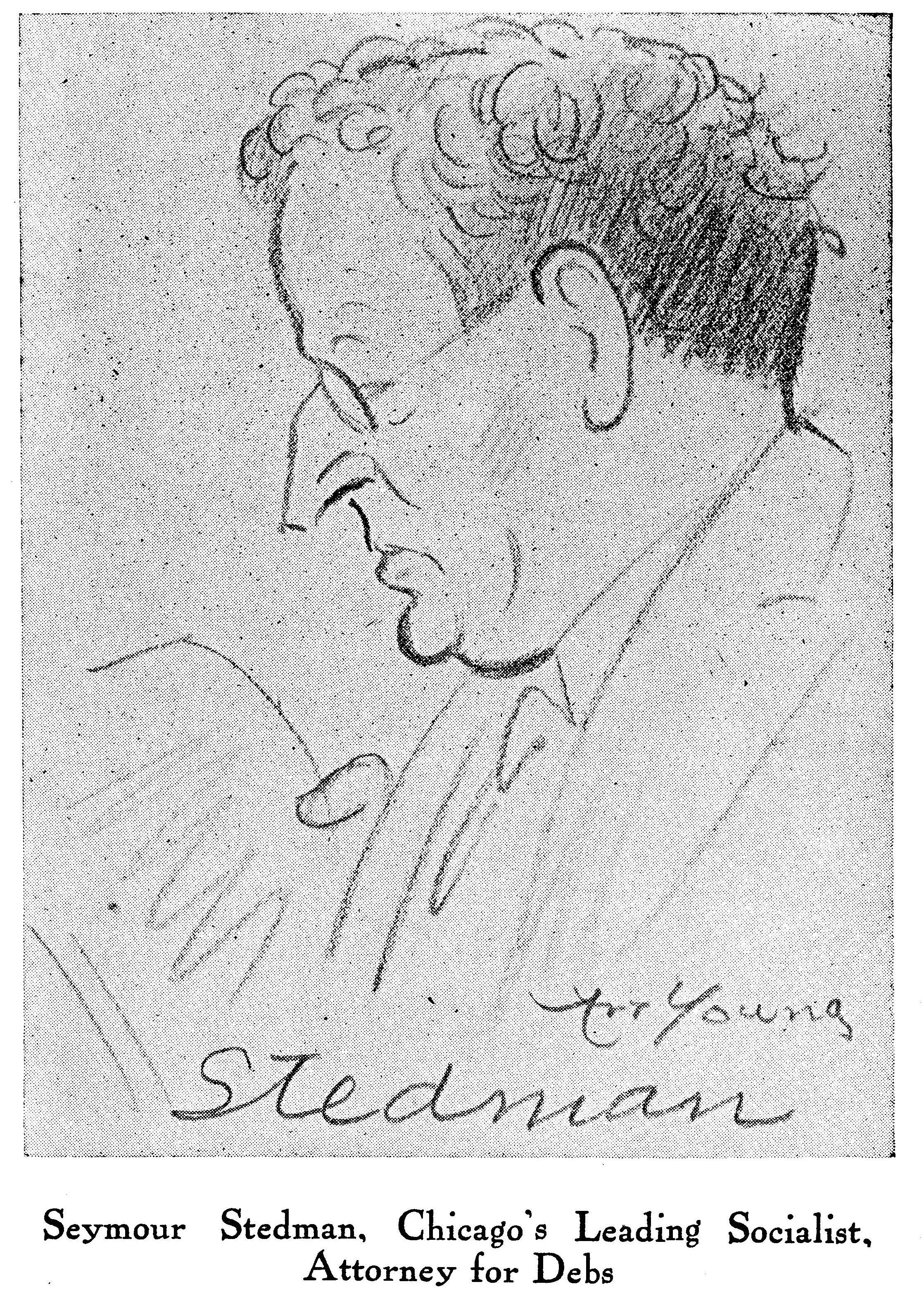 Gene talked. You who have never heard him talk don’t know just what that means. It isn’t erudition, fine choice of words, or well-modulated voice that makes his charm, but the intensity of his face, glowing, and the swift tumbling out of his sincere words. He told about his trip, describing with boyish pleasure how he outwitted the detectives watching for him in Cleveland; and how mayors and patriotic committees in little towns had warned him not to speak and he had spoken, just the same.