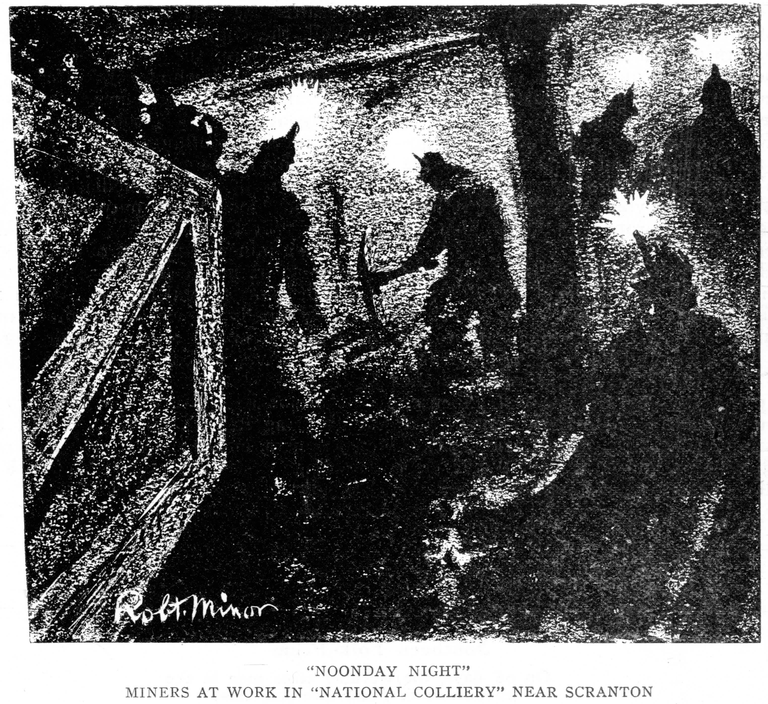 Robert Minor went to the mining area around Wilkes-barre, Pennsylvania to investigate conditions for the REVIEW and sent back this evocative report, complemented by his marvelous sketches of the area.