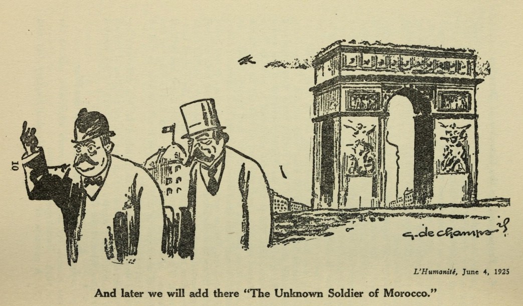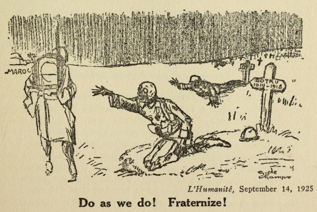 “Uphold the French workers. Sustain their Committee of Action against the Moroccan War. Join them in demanding peace with the Riff Republic and the evacuation of Morocco. Long live the liberation of oppressed peoples! Long live the brotherhood of races! Down with colonialism!”