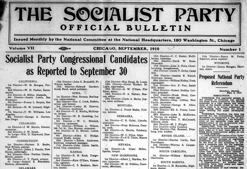 The Socialist Party’s state and local candidate lists for the elections of 1910. That spring the party had won a majority and the mayorship in Milwaukee and were seeking to use that victory for the mid-term elections in the fall.