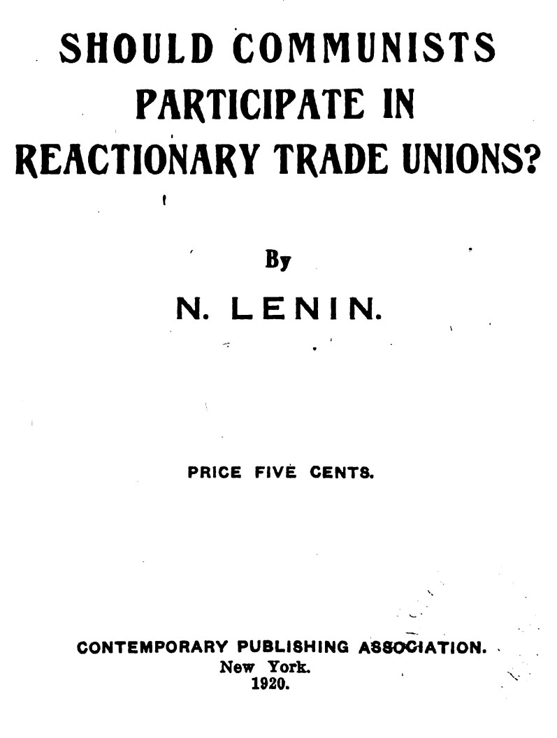 ‘Should Communists Participate In Reactionary Trade Unions?’ by N. Lenin. Literature Department of the Workers Party of America, New York. 1923.
