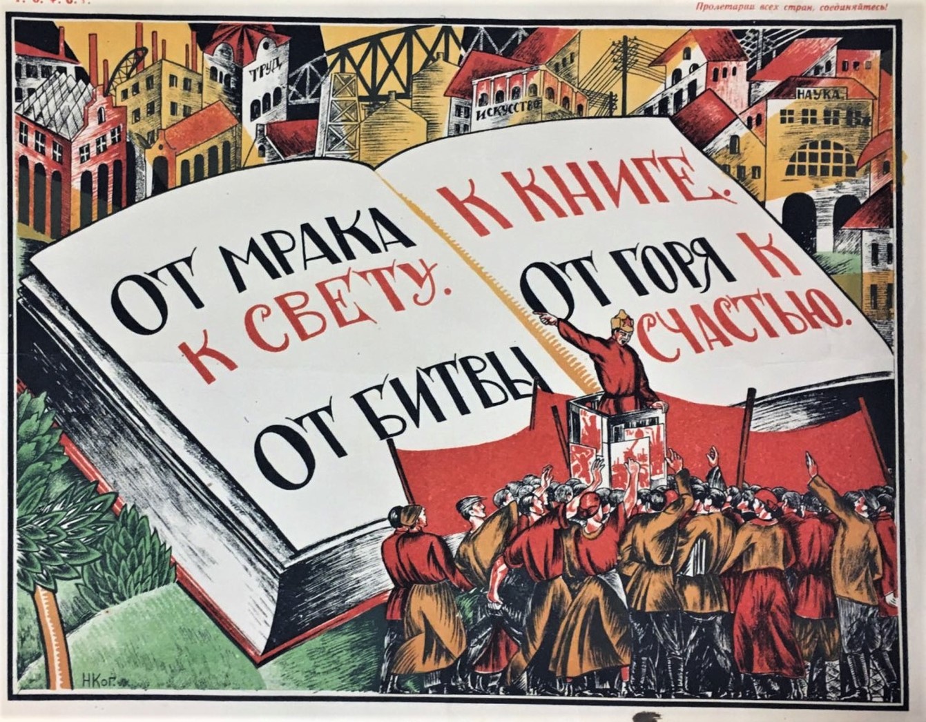 A special resolution which I proposed two years ago at the Eighth Congress, and which was then adopted, stated that the People’s Commissariat of Education should, under the present conditions, be an organ of Communist education, and that the Communist Party should be closely connected, since this Commissariat is an organ of education and since education must mean Communist education. And to the extent to which the Party carries on propaganda and agitation it should make full use of the apparatus of the People’s Commissariat of Education. But we made very slow progress in this direction, and the Commissariat of Education suffered thereby. Vladimir Ilyich (Lenin) has many times pointed out the plain duty of the party to attract the teachers, as they come nearer to us, to educational and political work; and to compel those teachers who do not come nearer to us to read the decrees and to spread our literature. A good start was then made by the extra-mural division. The extra-mural division was instructed to organize, conjointly with the provincial party committees, courses on the struggle with Poland. This was an absolutely new thing, because the extra-mural teachers had to undertake work of a new type in cooperation with the Party and under the direction of party members, to present the history of Poland, the present social order of Poland, the causes of the war with Poland, etc. In this respect we had considerable success which proves that when the Party supports us we can accomplish a great deal of work, considerably more work than without such support. Indeed, in this work we made a discovery. In 29 provinces, in each of which we opened a school, we passed 2,381 agitators in one month, specialists on the Polish question, and all these agitators were assigned by the Party to the front or for work in the interior. As a further illustration of my thought, I will point out how energetically the sub-divisions of the Commissariat of Education work when they have the support of the Party. Thus, for instance, when it was decided to open new educational institutions in honor of the Third Internationale, when this slogan was issued with Comrade Kalinin’s and my own signature, the results exceeded all our expectations. We were able to achieve unprecedented results in the sense of opening new educational institutions. We had demanded that these institutions be situated in equipped buildings and that they be provided with school supplies. And we now have 23 schools, 164 homes for children, 20 kindergartens, etc. In short, 316 educational institutions sprang up like mushrooms. They all bear the name of the Third Internationale, and this has immense propaganda value.