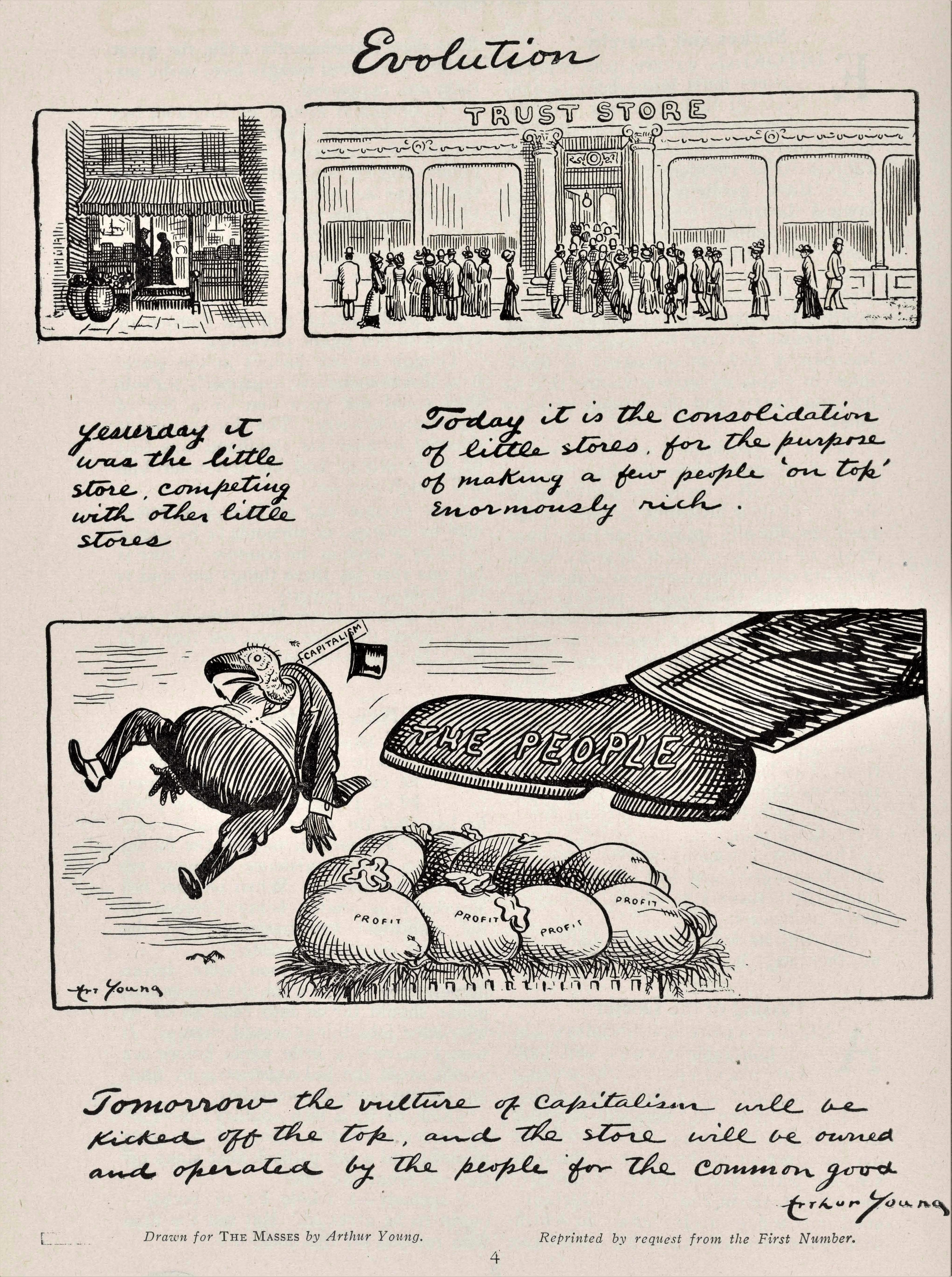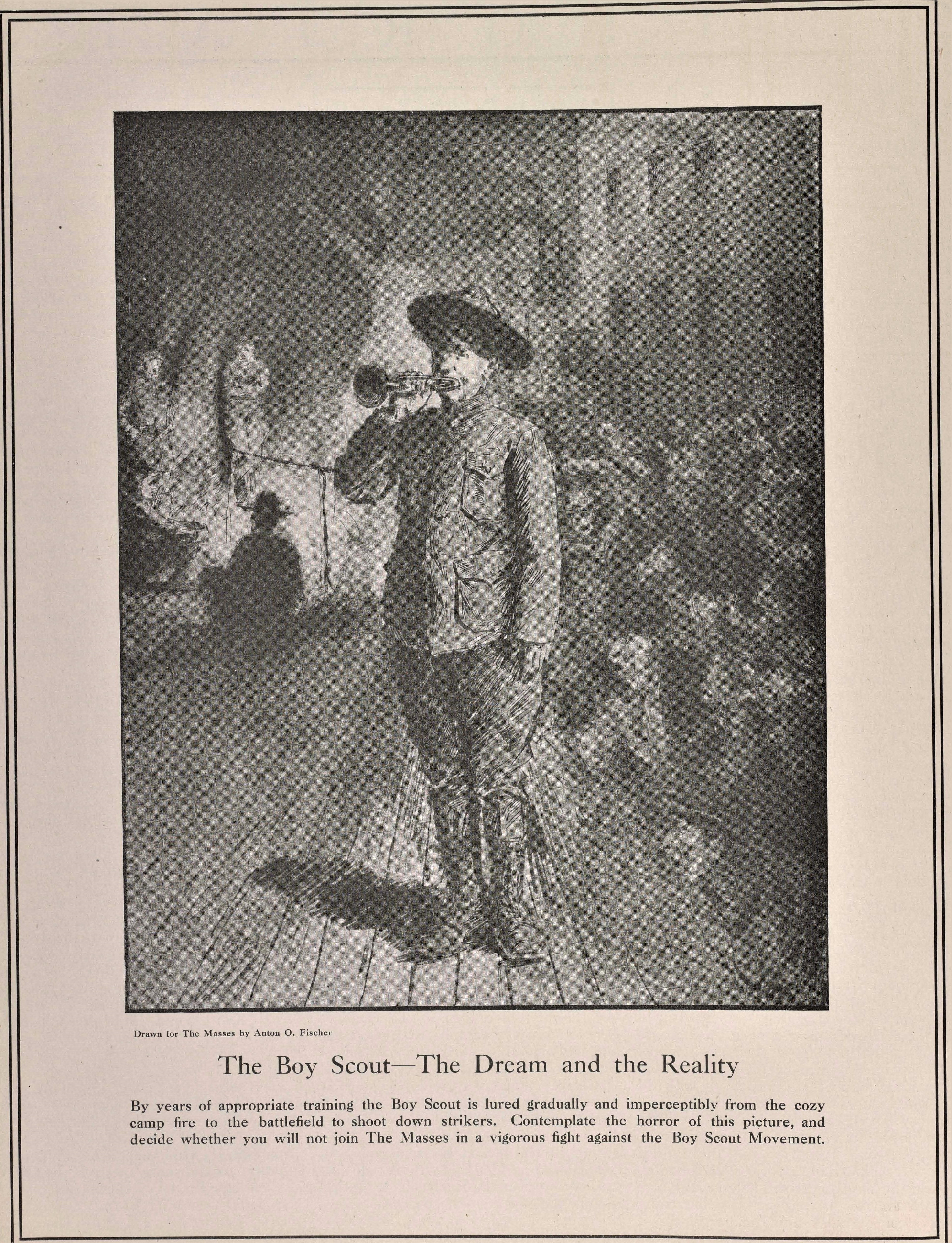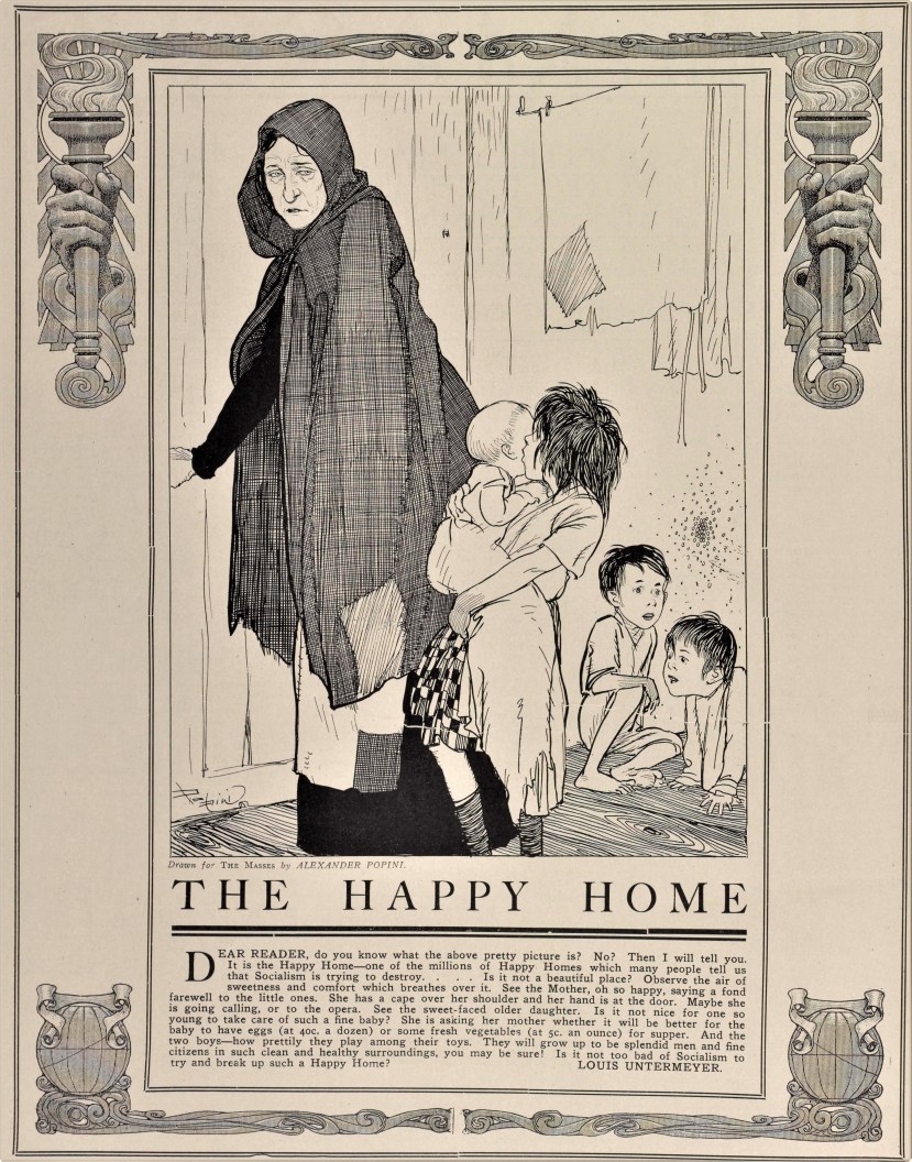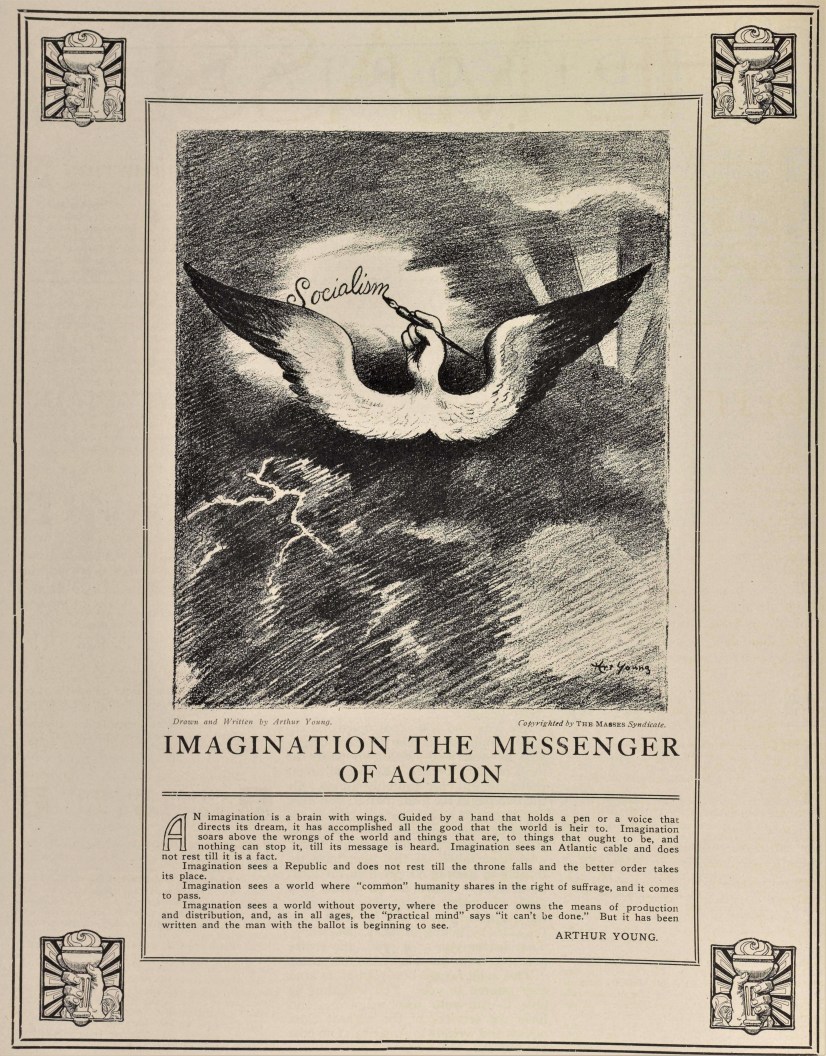 The Masses is among the most important, and best, radical journals of 20th century America. It was started in 1911 as an illustrated socialist monthly by Dutch immigrant Piet Vlag, who shortly left the magazine. It was then edited by Max Eastman who wrote in his first editorial: “A Free Magazine — This magazine is owned and published cooperatively by its editors. It has no dividends to pay, and nobody is trying to make money out of it. A revolutionary and not a reform magazine; a magazine with a sense of humour and no respect for the respectable; frank; arrogant; impertinent; searching for true causes; a magazine directed against rigidity and dogma wherever it is found; printing what is too naked or true for a money-making press; a magazine whose final policy is to do as it pleases and conciliate nobody, not even its readers — There is a field for this publication in America. Help us to find it.” The Masses successfully combined arts and politics and was the voice of urban, cosmopolitan, liberatory socialism. It became the leading anti-war voice in the run-up to World War One and helped to popularize industrial unions and support of workers strikes. It was sexually and culturally emancipatory, which placed it both politically and socially and odds the leadership of the Socialist Party, which also found support in its pages. The art, art criticism, and literature it featured was all imbued with its, increasing, radicalism. Floyd Dell was it literature editor and saw to the publication of important works and writers. Its radicalism and anti-war stance brought Federal charges against its editors for attempting to disrupt conscription during World War One which closed the paper in 1917. The editors returned in early 1918 with the adopted the name of William Lloyd Garrison’s The Liberator, which continued the interest in culture and the arts as well as the aesthetic of The Masses. Contributors to this essential publication of the US left included: Sherwood Anderson, Cornelia Barns, George Bellows, Louise Bryant, Arthur B. Davies, Dorothy Day, Floyd Dell, Max Eastman, Wanda Gag, Jack London, Amy Lowell, Mabel Dodge Luhan, Inez Milholland, Robert Minor, John Reed, Boardman Robinson, Carl Sandburg, John French Sloan, Upton Sinclair, Louis Untermeyer, Mary Heaton Vorse, and Art Young.