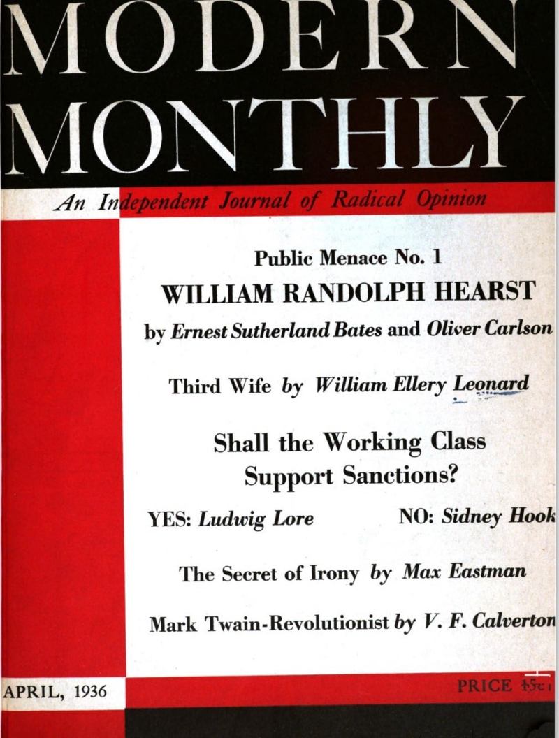 Modern Quarterly began in 1923 by V. F. Calverton. Calverton, born George Goetz (1900–1940), a radical writer, literary critic and publisher. Based in Baltimore, Modern Quarterly was an unaligned socialist discussion magazine, and dominated by its editor. Calverton’s interest in and support for Black liberation opened the pages of MQ to a host of the most important Black writers and debates of the 1920s and 30s, enough to make it an important historic US left journal. In addition, MQ covered sexual topics rarely openly discussed as well as the arts and literature, and had considerable attention from left intellectuals in the 1920s and early 1930s. From 1933 until Calverton’s early death from alcoholism in 1940 Modern Quarterly continued as The Modern Monthly. Increasingly involved in bitter polemics with the Communist Party-aligned writers, Modern Monthly became more overtly ‘Anti-Stalinist’ in the mid-1930s Calverton, very much an iconoclast and often accused of dilettantism, also opposed entry into World War Two which put him and his journal at odds with much of left and progressive thinking of the later 1930s, further leading to the journal’s isolation.