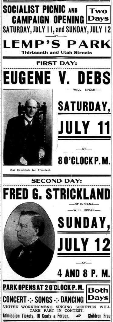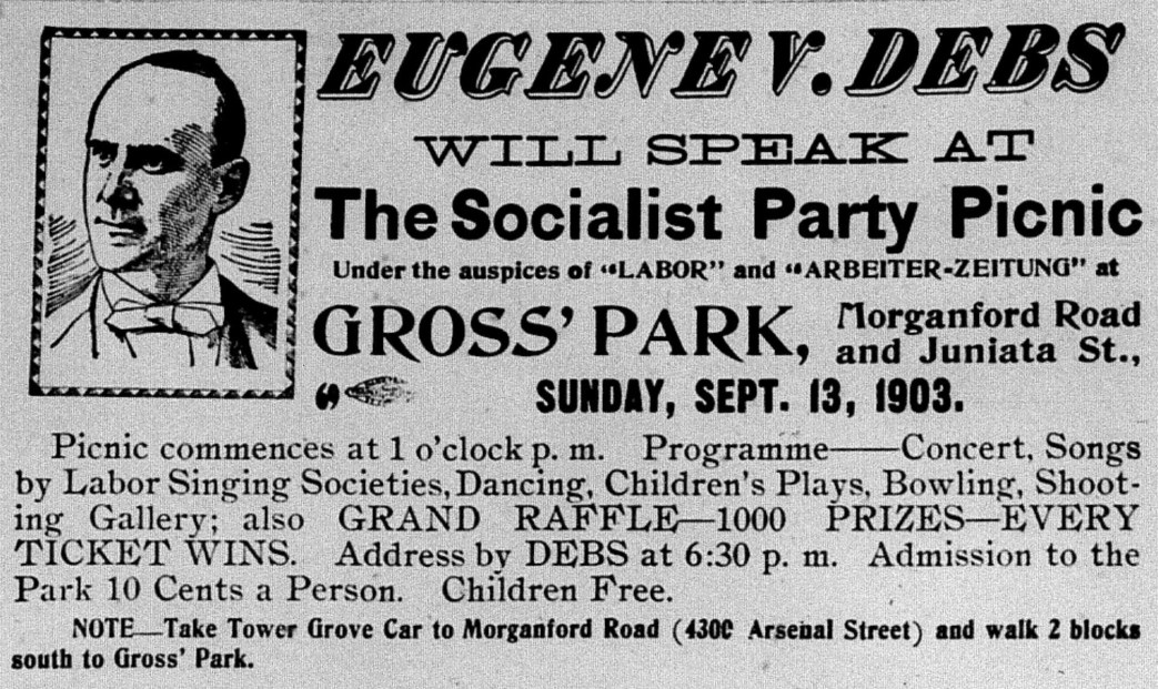 From 1897 to 1898 St. Louis was practically without any kind of a Socialist paper. This was at the time when the old SLP was fast sailing into the harbor of Lost Hope, and when Comrade Eugene V. Debs and his friends and colleagues of Woodstock jail fame organized the Social Democracy of America, with its well remembered colony scheme. More than ever before the St. Louis Socialists who could not be “pickled” by DeLeonism realized that a Socialist paper was an absolute necessity. But there was not a cent of money and plenty of discouragement and demoralization. About 25 comrades worked for a whole year to collect a few dollars for a Socialist press fund. Each of these comrades pledge himself to pay $5 for the purpose. A Socialist publishing society was then organized, and in August 1898 the first number of our Arbeiter-Zeitung made its appearance. Only members of the Social Democratic Party (later Socialist Party) could become members of the Arbeiter-Zeitung Association. So poor was our movement then that for about one year and a half we had to get the paper printed in Belleville, Ill., because we could get it out cheaper over there than in St. Louis (by getting it printed in the Belleville labor paper plant).