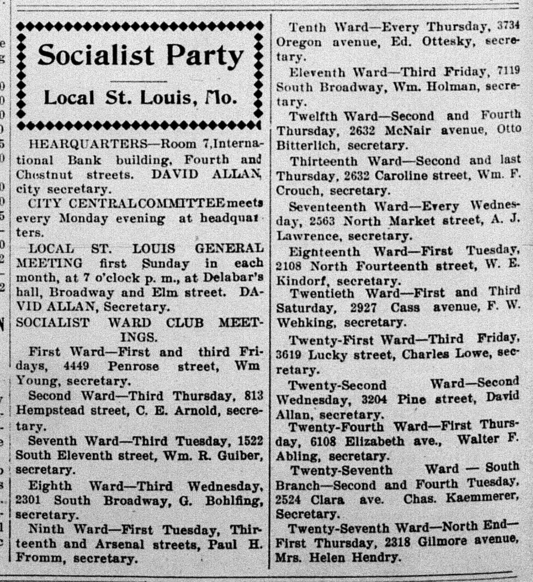 ‘Socialism in St. Louis: Words of History’ by G.A. Hoehn from St. Louis Labor. Vol. 6 No. 439. July 3, 1909.